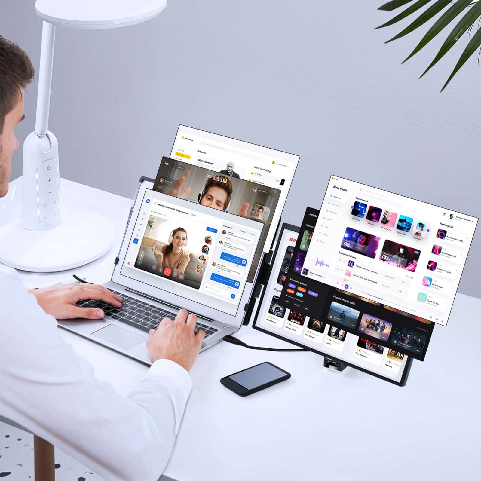 This screen extender can be directly attached to laptops for multi-screen use, with 210° rotation. Place it on the left or right side as needed, ideal for video conferences, office presentations, or travel.