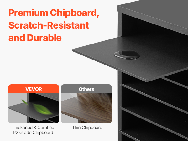 Our wood literature organizer is built from durable P2 particle board and is EPA certified, ensuring it's secure for you and your family to use. The smooth, polished surface is waterproof, scratch-resistant, and easy to clean, making it ideal for busy workplaces.