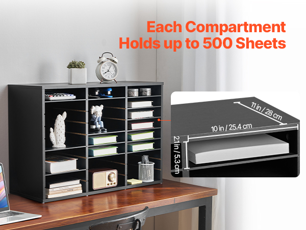 Each compartment of the office mailbox measures 10.0 x 11.0 x 2.1 inches / 254 x 279 x 533 mm and can hold up to 500 sheets of A4 paper. The included labels help you quickly locate your files, saving you valuable time.