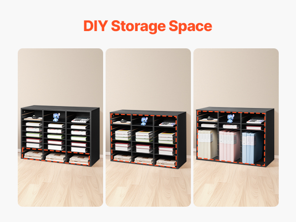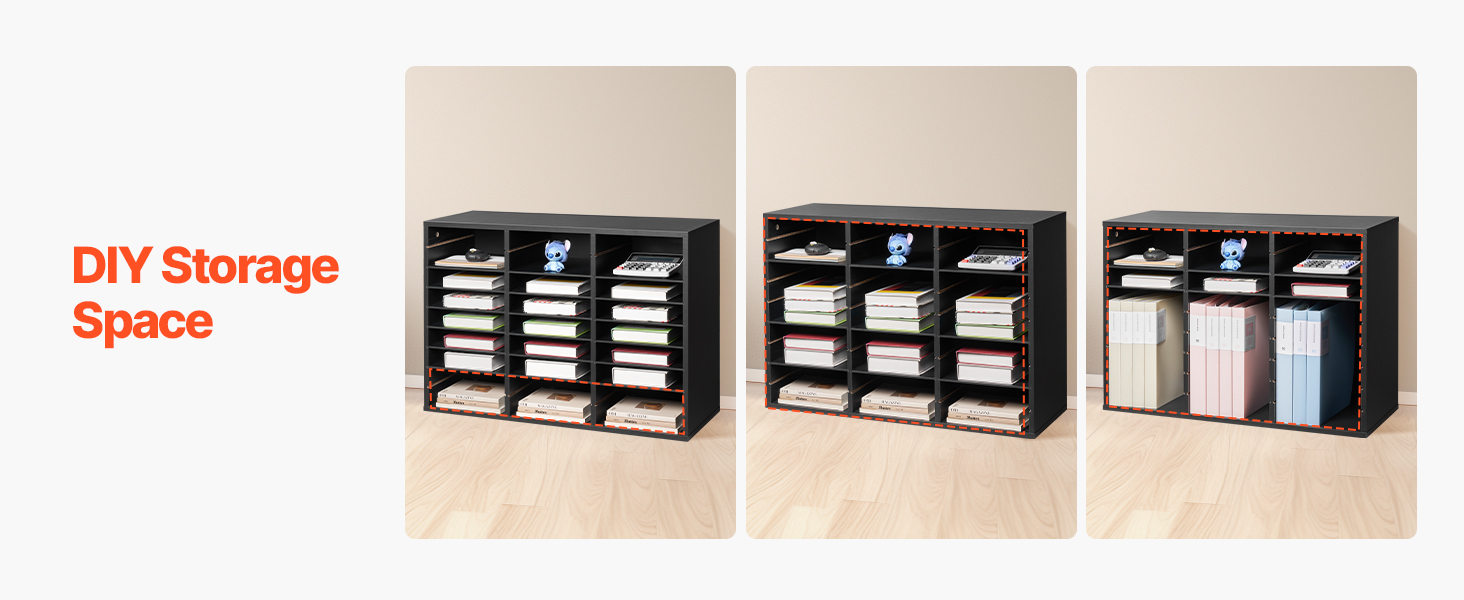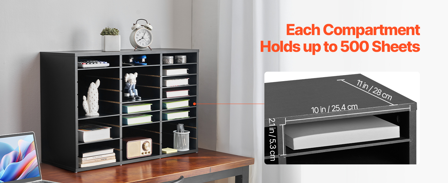 VEVOR Literature Organizer, 27 Compartments Office Mailbox with Removable Shelves, Wooden Mailbox Sorter Particle Board Office Home Classroom Storage, File Sorter for Files, Documents, Papers, Black