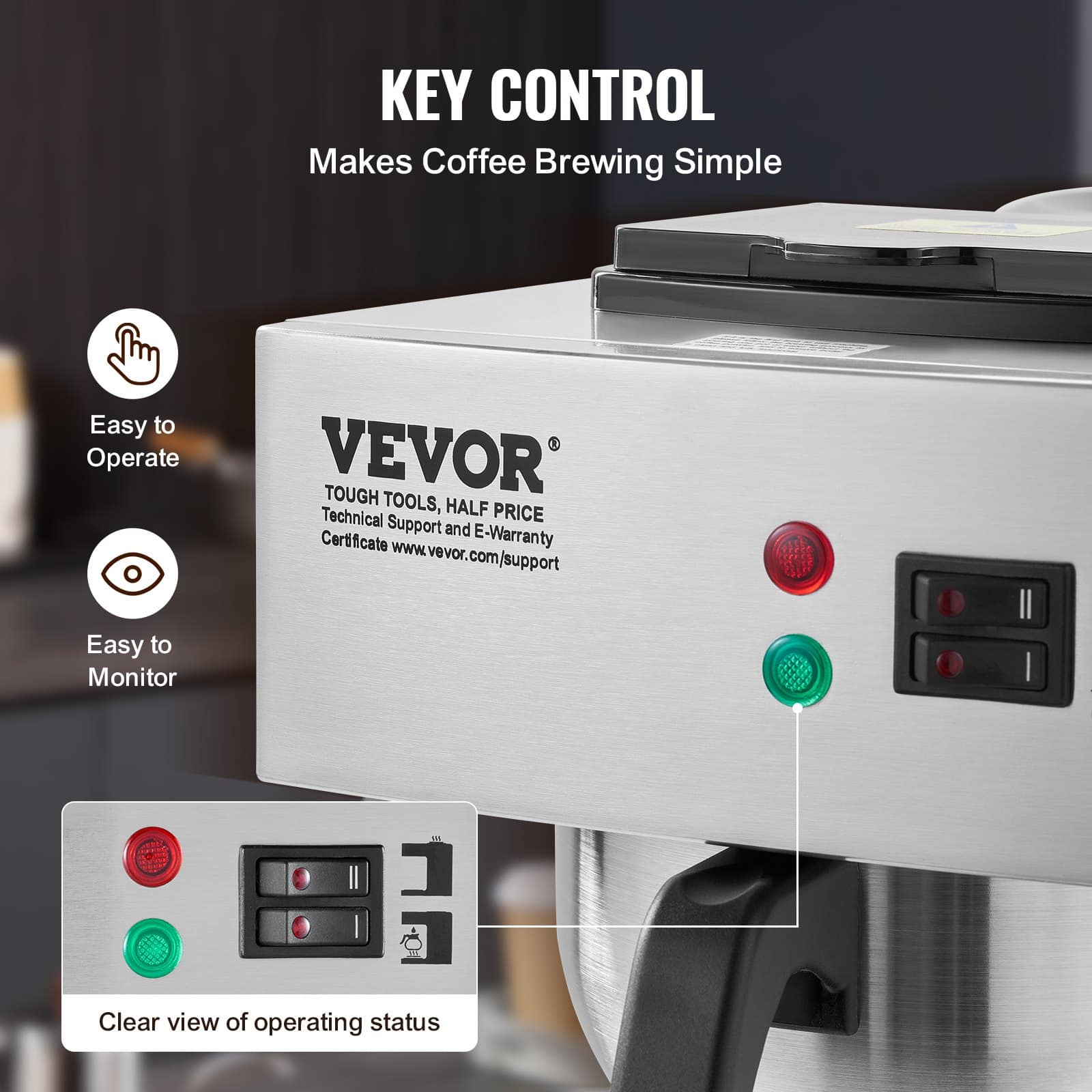 Šis komerciālais pilināmais kafijas automāts var pagatavot veselu kafijas kannu mazāk nekā 10 minūtēs, vienlaikus apmierinot 12–13 cilvēku kafijas vajadzības. Vairs nav jāuztraucas par garām rindām!