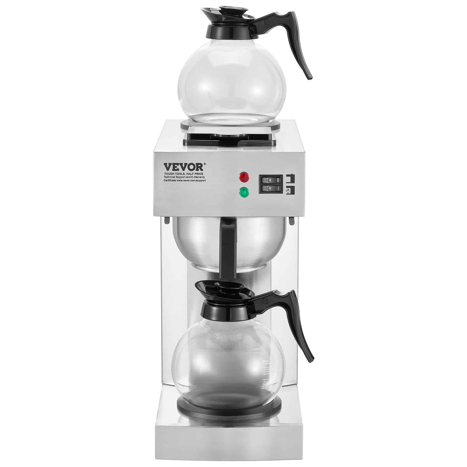 VEVOR 12 Cups Commercial Drip Coffee Maker, Coffee Maker Machine with 2 Glass Carafes and 2 Warmer Plates, Stainless Steel Pour Over Coffee Brewer for Restaurant, Office, Cafe