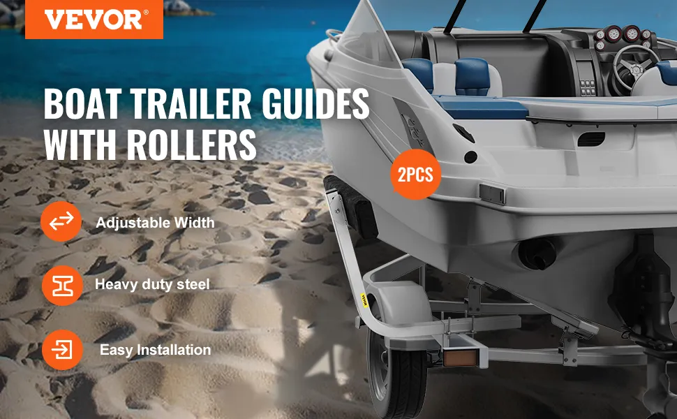 VEVOR Boat Trailer Guide, 2PCS Adjustable Short Bunk Guide-Ons, Hardened Steel Trailer Guide Poles with Soft Cushion, Heavy Duty Roller Guide Design, for Ski Boat, Fishing Boat or Sailboat Trailer
