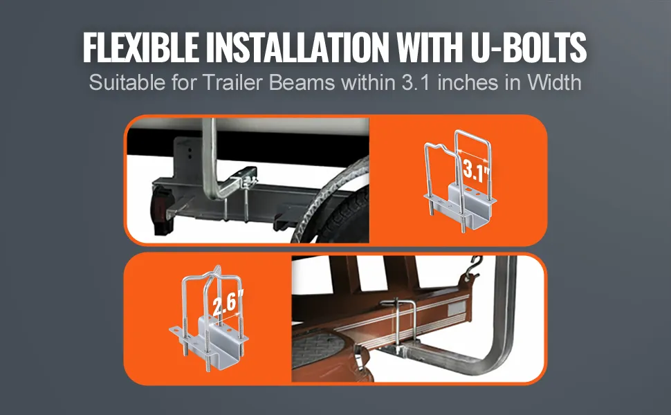 Šīs divas uzstādīšanas metodes ir piemērotas piekabēm ar dažādu rāmja platumu. Uzlabotais M8 biezinātais augstas stiepes tērauda materiāls nodrošina stingru un stabilu uzstādīšanu bez pārmērīgas kustības vai deformācijas.