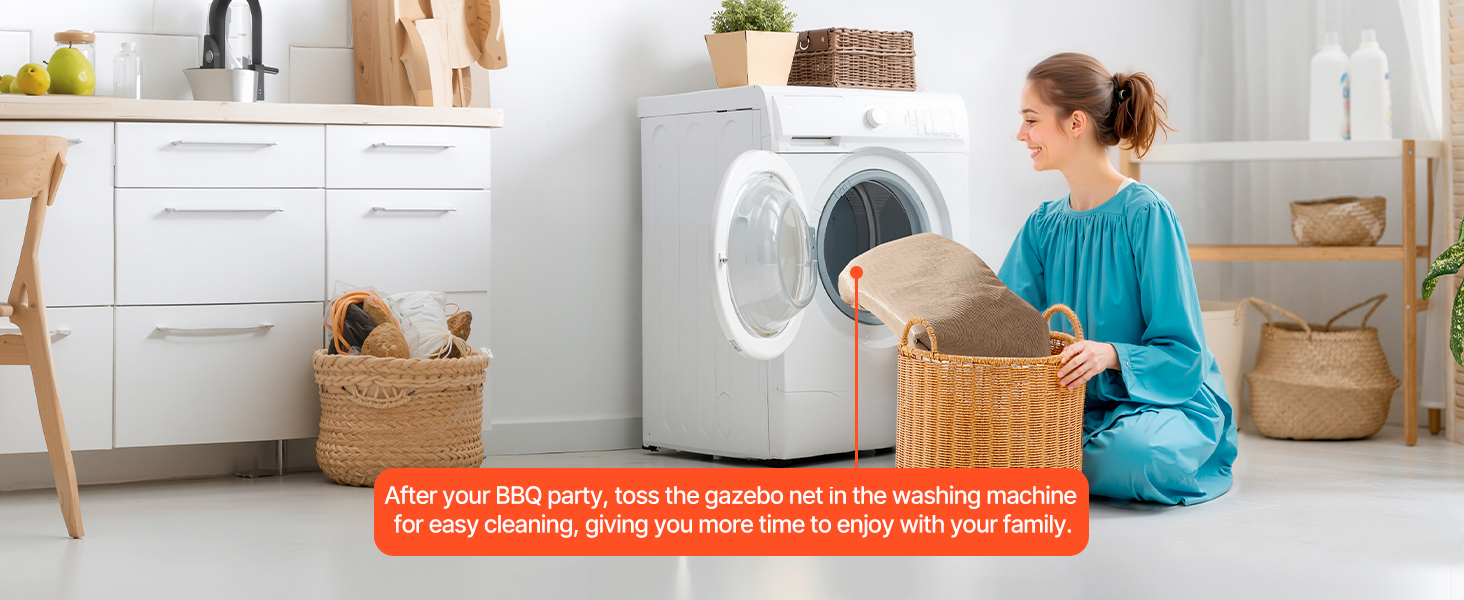 Lapenes tīklu var sarullēt un uzglabāt, kad tas netiek lietots, ietaupot vietu. To var mazgāt veļas mašīnā, tāpēc no tā ir viegli notīrīt netīrumus vai eļļas traipus un atjaunot to kā jaunu, ietaupot gan laiku, gan pūles.