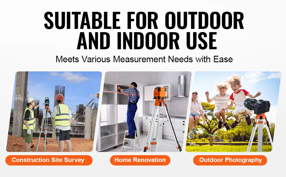 • Daudzpusīgs pielietojums: Šis statīvs ir saderīgs ar 5/8″-11 vītņotiem stiprinājumiem un darbojas ar līniju lāzeriem, punktveida lāzeriem un lāzera attāluma mērītājiem, padarot to piemērotu celtniecībai, interjera dekorēšanai, mēbeļu ražošanai un ainavu dizainam.