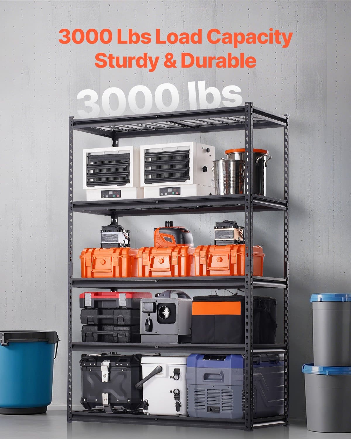 VEVOR Storage Shelves, 3000 lbs, 5 Tier Heavy Duty Garage Shelving, 20" D x 48" W x 72" H Adjustable Metal Shelves for Industrial Shelving Unit Utility Shelf, for Kitchen, Warehouse, Basement, Black