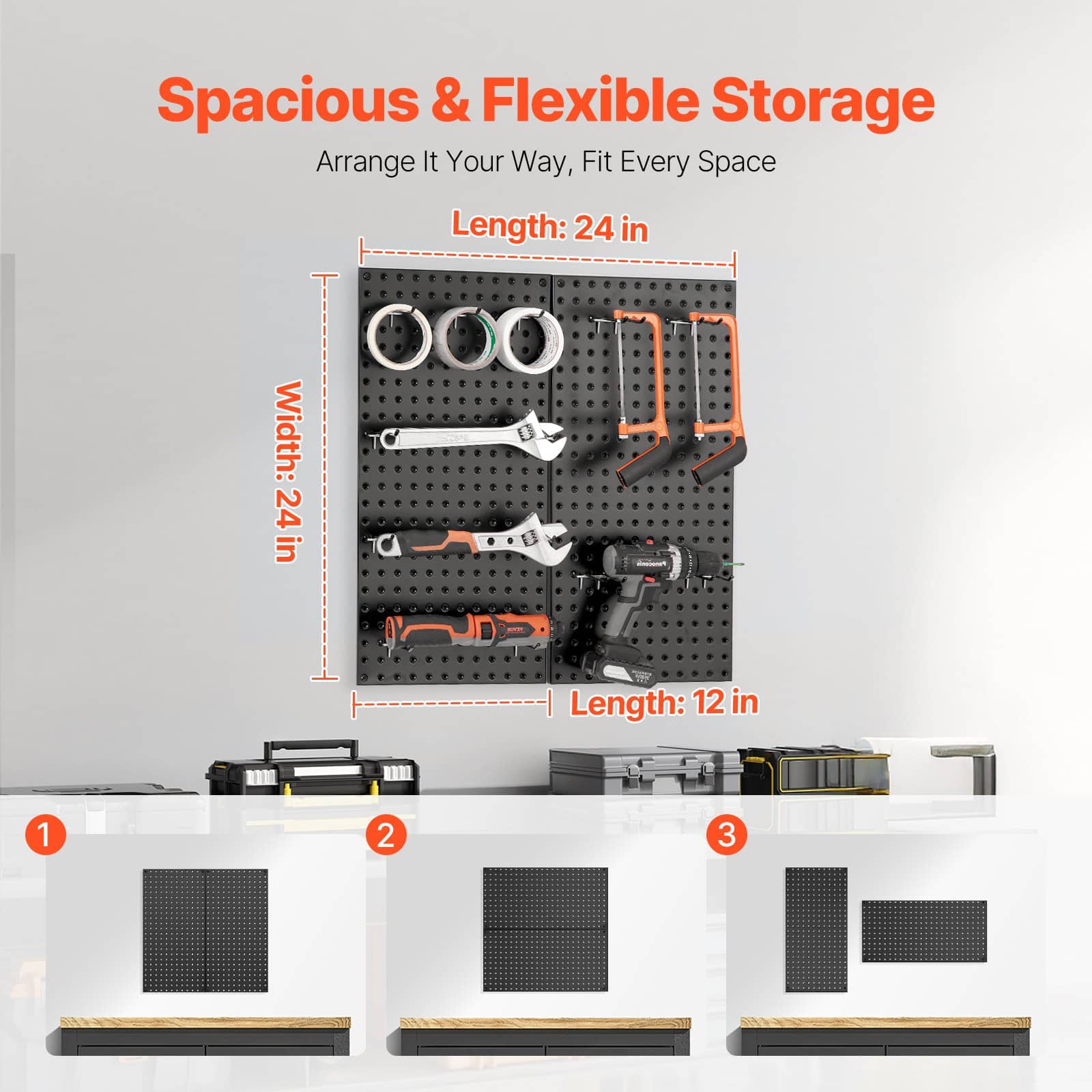 VEVOR Metal Pegboard Panels, 24" x 12" Pegboard, 2 Panels, Heavy Duty Peg Board Wall Organizer with Accessories, for Living Room Garage Tool Storage Office Organization Craft Room Kitchen Home, Black