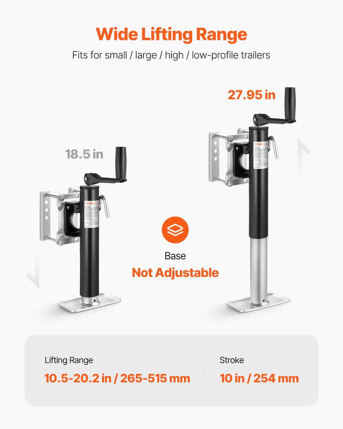 VEVOR piekabes ligzda, 2000 mārciņu dinamiskā kravnesība, lieljaudas grozāmā skrūvējamā piekabes ligzda, 10 "paceļamā piekabes ligzdas statīvs ar rokturi RV piekabei, zirga piekabei, komunālajai piekabei un jahtas piekabei