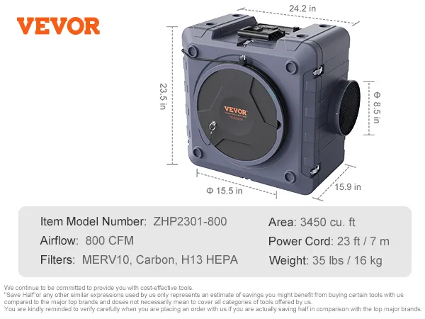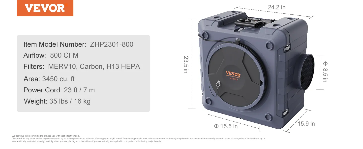 VEVOR Air Purifier with 3 Stage Stackable Negative Air Machine with 800 CFM