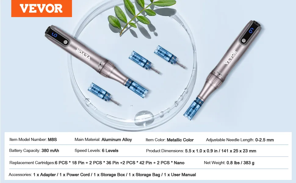 Enhance your skin’s health with VEVOR M8S microneedling pen, designed to boost product absorption, brighten complexion, lighten pores, and improve skin elasticity. Whether you're addressing dull skin or fine lines, this pen delivers noticeable improvements, leaving skin with a radiant glow.