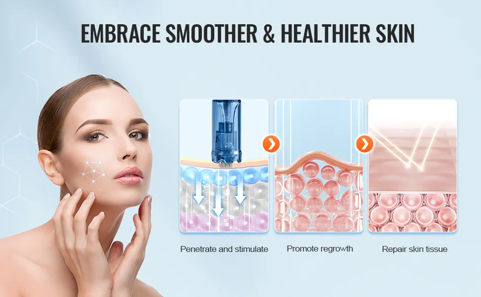 The electric microneedling pen effectively enhances skin texture by stimulating the skin's natural repair processes. With consistent use, it helps to promote skin tissue repair, brighten skin tone, enhance skin elasticity, and achieve smoother skin.
