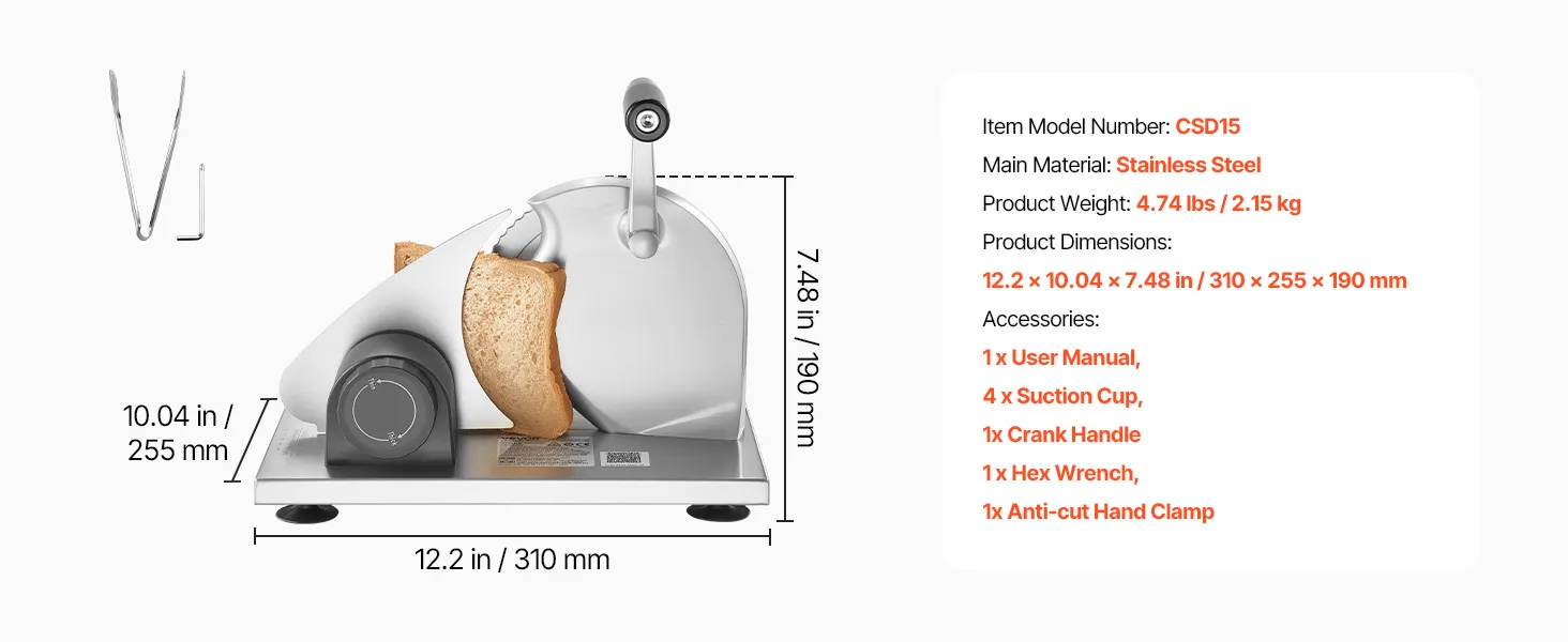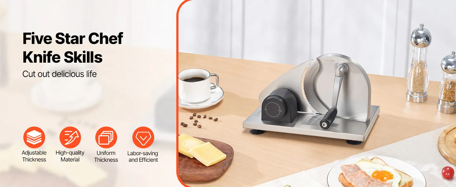 The VEVOR hand-cranked bread slicer delivers fast, smooth, and even cuts with adjustable thickness from 0 to 15mm. It’s an ideal tool for kitchens, bakeries, and gatherings—making bread prep easier and more convenient.