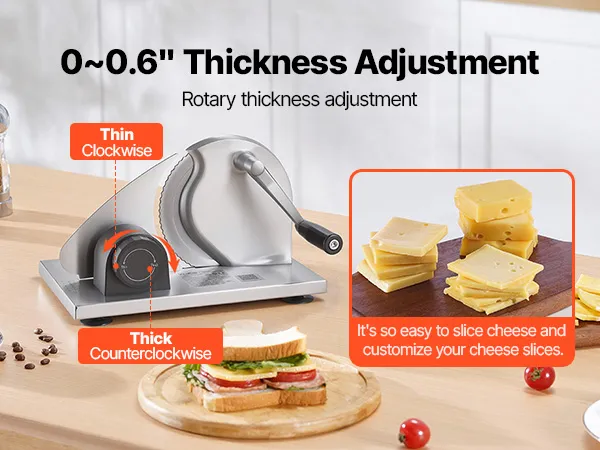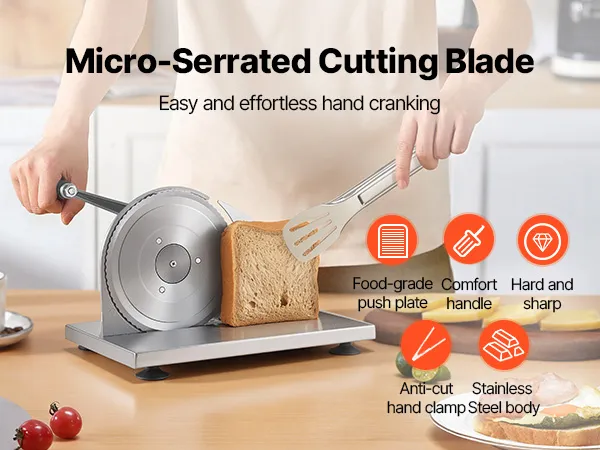 VEVOR Manual Bread Slicer, 0-15mm Adjustable Thickness Cheese Cutter, Hand-Cranked Bread Slicer with Micro-Serrated Stainless Steel Blade for Kitchen, Bakery, Party