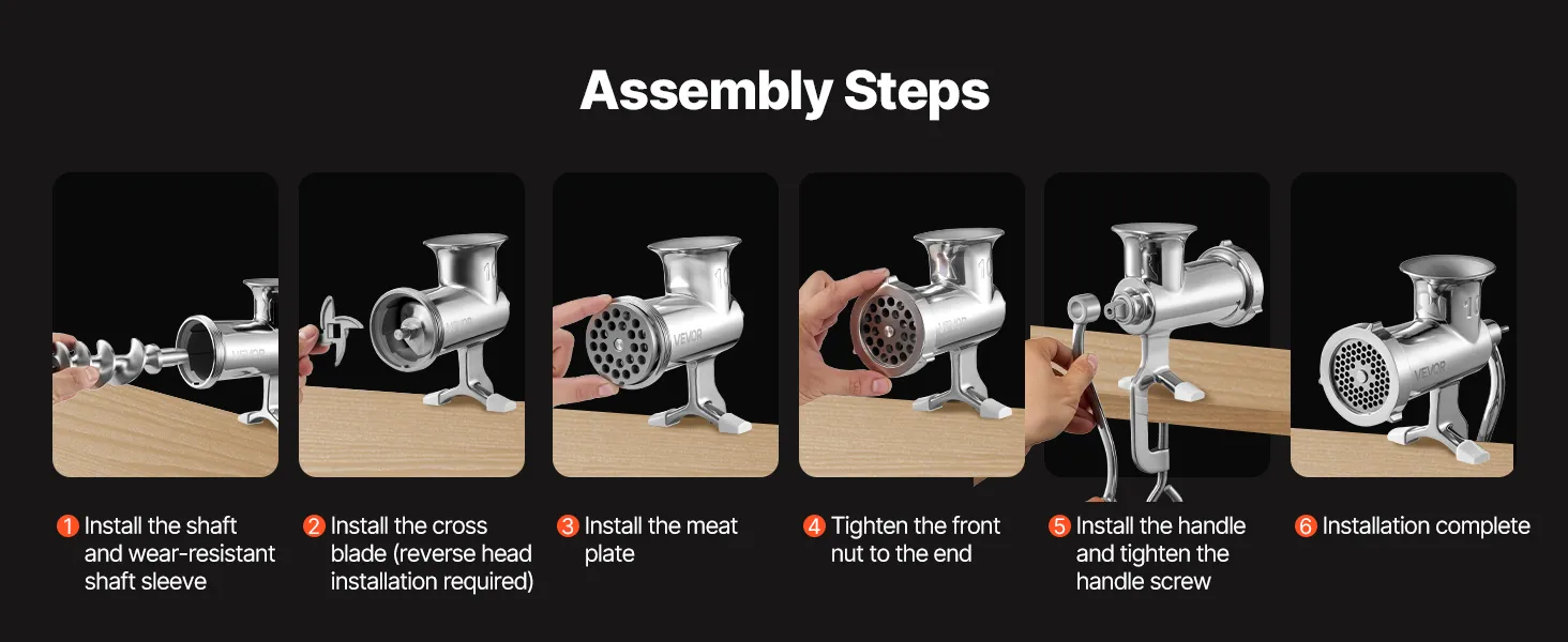 Nav nepieciešami instrumenti — tikai dažas vienkāršas darbības, lai uzstādītu manuālo desu dzirnaviņas, un jūs būsiet gatavs sākt gatavot acumirklī.
