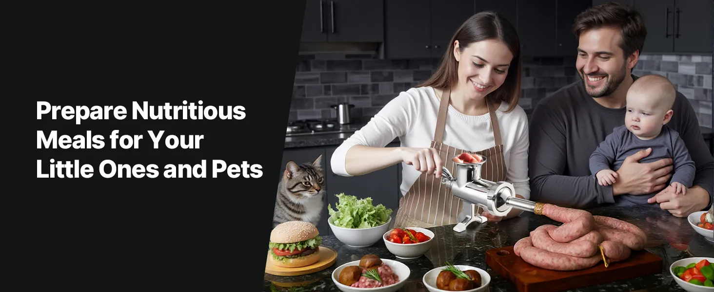 The tabletop clamp meat grinder is ideal not only for human food but also for preparing fresh, healthy meals for your pets, including cats and dogs, ensuring their nutrition is just as important.