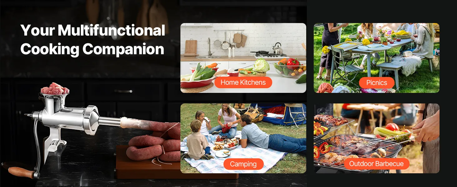 Lightweight and compact, this manual sausage maker is ideal for your kitchen, picnics, outdoor barbecues, and camping trips. Turn your space into creative cooking zone and enjoy the fun of homemade meals.