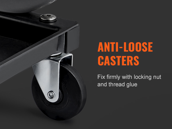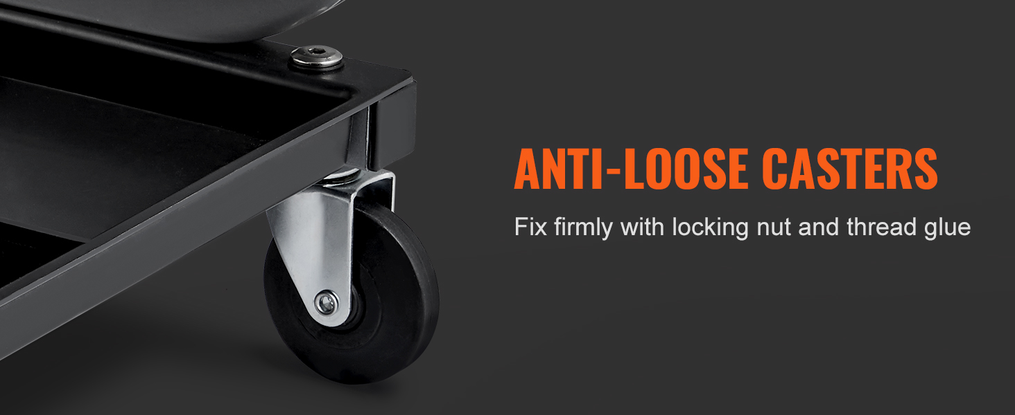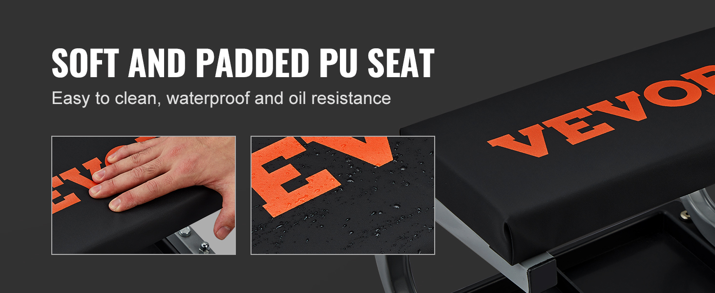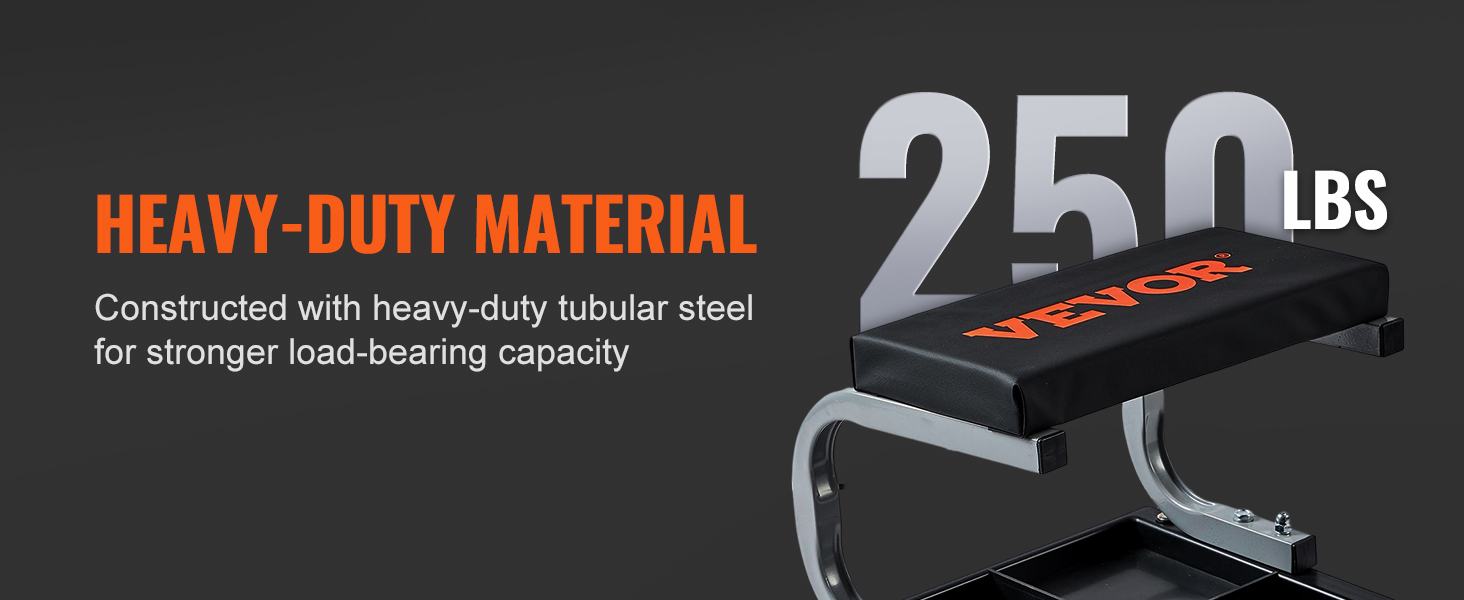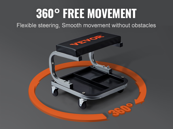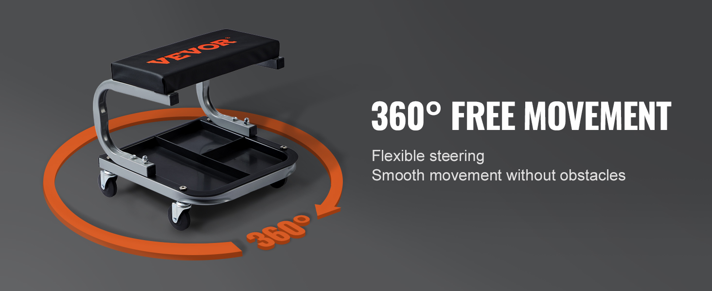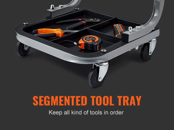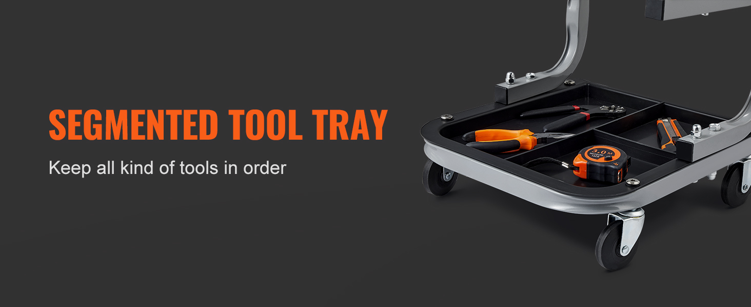 VEVOR Izturīgs Mehāniķu Garāžas Krēsls ar Instrumentu Paplāti, 113 kg/250 lbs Ietilpība, 36 cm/14.2" Augstums, 360° Ritenīši