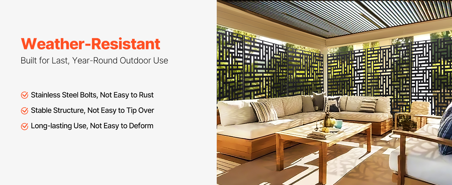 This 47x76 in metal privacy screen is corrosion-resistant and durable, ideal for long-term outdoor use. With wind resistance, it's ideal for gardens, patios, and courtyards, offering both privacy and style. It can also be used indoors to divide spaces, providing versatile, elegant separation.