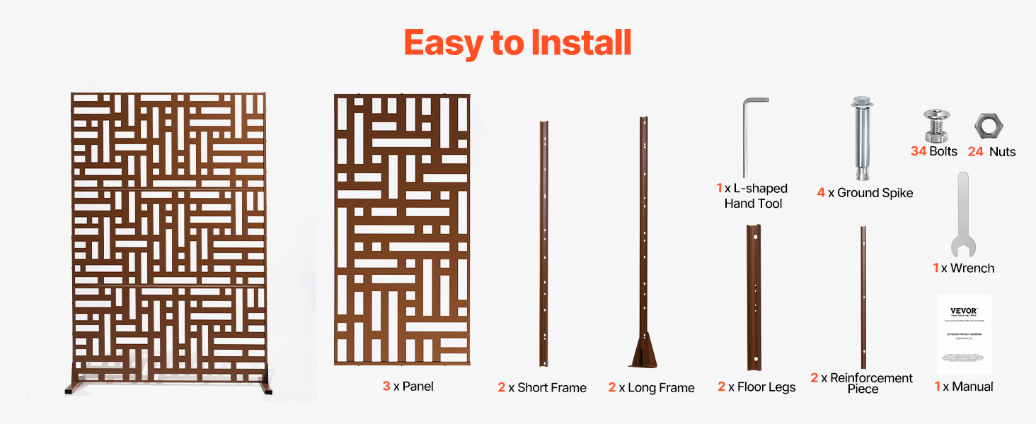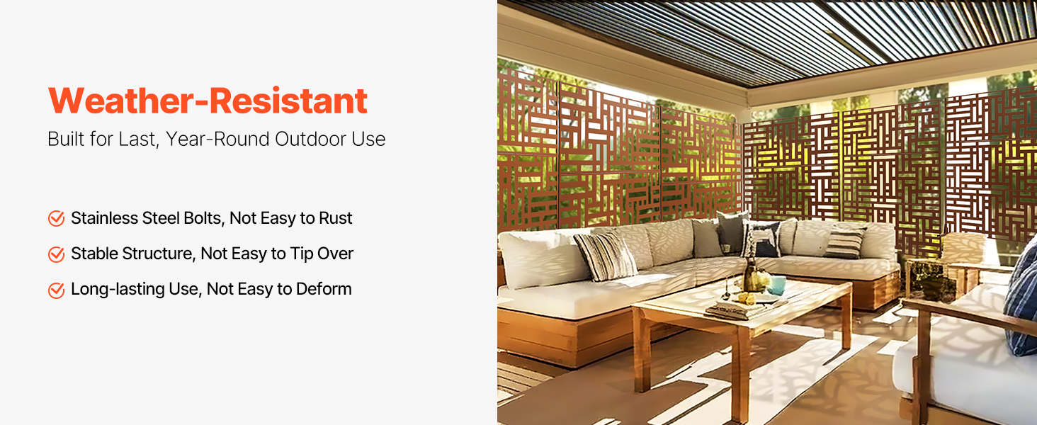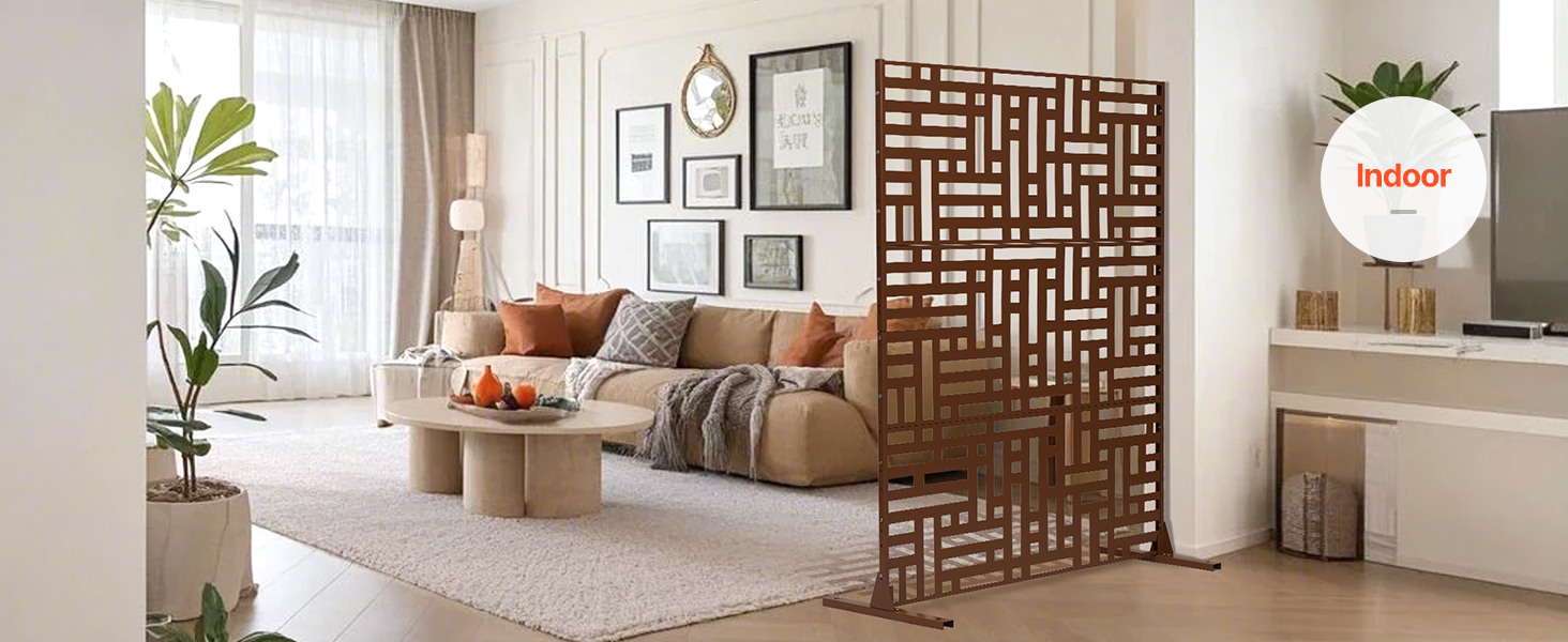 This 36x72 in metal privacy screen is corrosion-resistant and durable, ideal for long-term outdoor use. With wind resistance, it's ideal for gardens, patios, and courtyards, offering both privacy and style. It can also be used indoors to divide spaces, providing versatile, elegant separation.