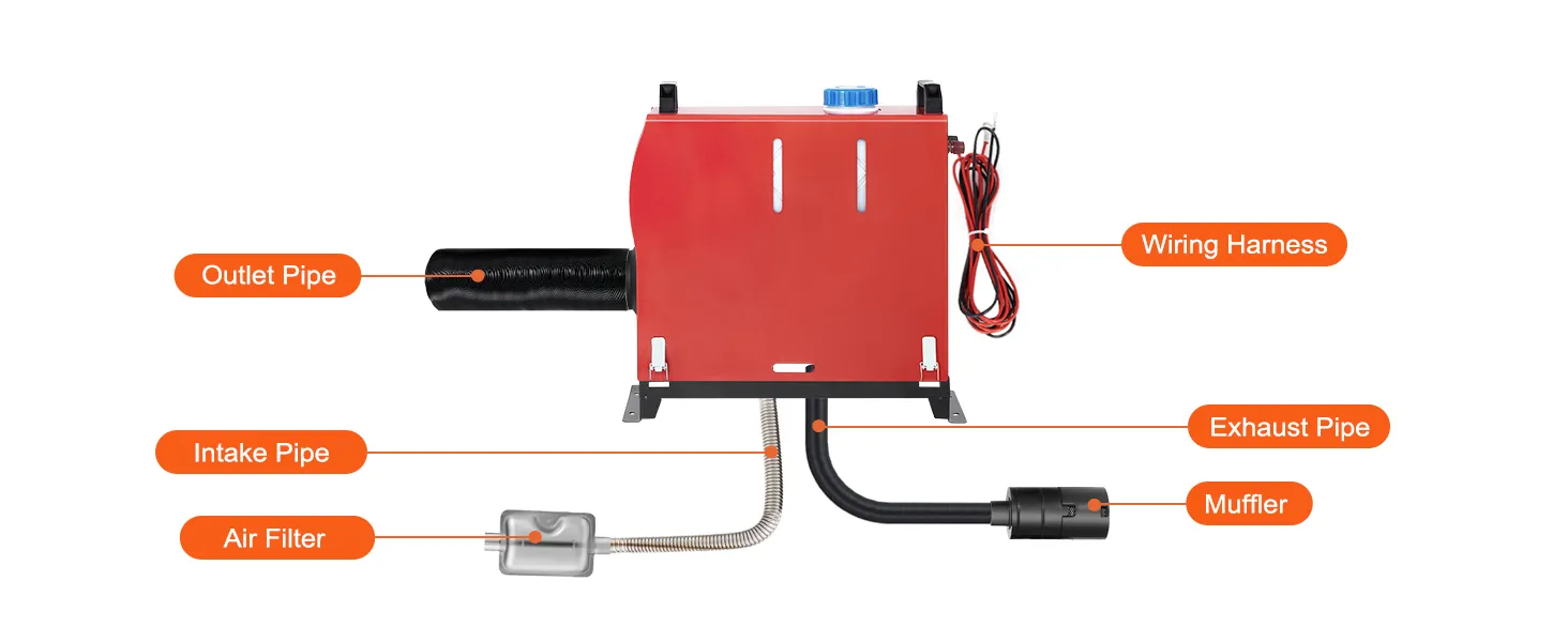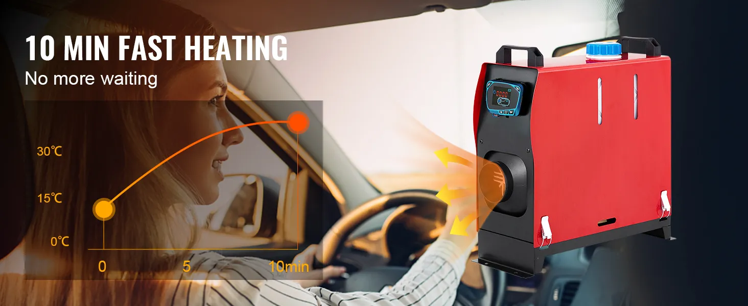 • Sajūtiet siltumu acumirklī: Sajūtiet siltumu ar katru elpas vilcienu! Ieelpotais vēsais gaiss tiek uzkarsēts un kļūst karstāks caur alumīnija sadegšanas kameru. Dīzeļdegvielas sildītājs ātri uzsilst un paaugstina automašīnas temperatūru 10 minūšu laikā; tas var arī iepriekš uzsildīt dzinēju un acumirklī notīrīt logu apledojumu! Padariet savus ziemas piedzīvojumus bez raizēm.