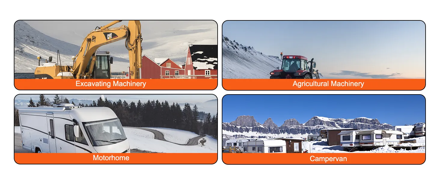 • Dīzeļdzinēju transportlīdzekļi un lietošana iekštelpās: Kā sildītājs jebkuram dīzeļdzinēju transportlīdzeklim, tas tiek plaši izmantots automašīnu, kemperu, dzīvojamo piekabju, kravas automašīnu, kuģu u.c. salona apsildei. Pateicoties kompaktajam un pārnēsājamajam dizainam, tas ir arī lieliska izvēle mājās vai iepirkšanās laikā.
