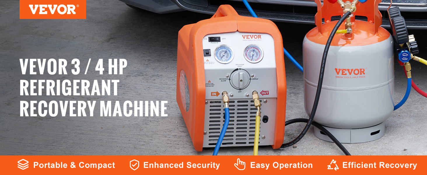 VEVOR 3/4 ZS Pārnēsājama Refrigeranta Atgūšanas Iekārta 220–240V HVAC un Auto Kondicionieriem – Augstspiediena Aizsardzība