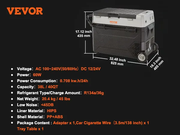 Mūsu automašīnas ledusskapis ir aprīkots ar 138 collu/3,5 m garu automašīnas cigarešu šķiltavas vadu un mājsaimniecības pārveidošanas spraudni, kas nodrošina netraucētu lietošanu mājās, jahtās, kemperos, vieglajās automašīnās, kravas automašīnās, furgonos un citur. Izbaudiet ērtības un daudzpusību, lai kur jūs dotos!