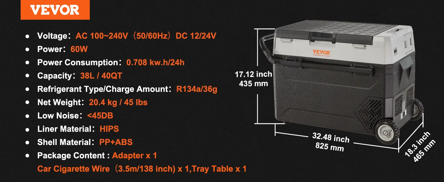 Mūsu 40QT automašīnas ledusskapis nodrošina plašu uzglabāšanas vietu visām jūsu vajadzībām. Pateicoties uzlabotajai kompresora tehnoloģijai, tas nodrošina ātru atdzesēšanu tikai 1,5 stundās. Un saglabā virsbūves integritāti temperatūras diapazonā no -4°F līdz 158°F.