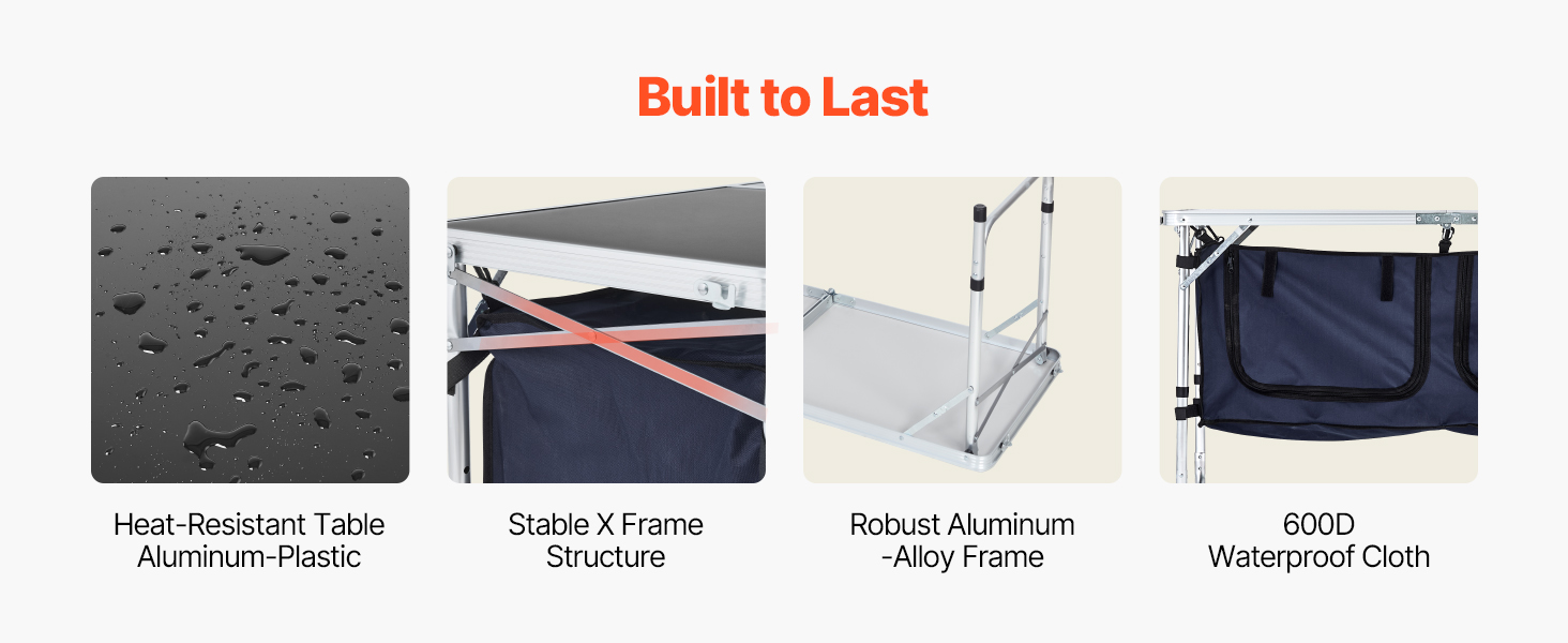 Kempinga virtuves galds ievērojami palielina jūsu uzglabāšanas vietu, ļaujot jums pārnēsāt pēc iespējas vairāk sastāvdaļu un virtuves piederumu. Tas ir arī viegli tīrāms.