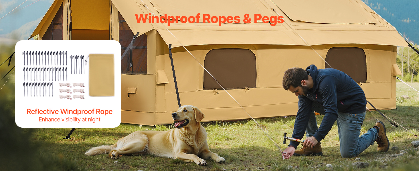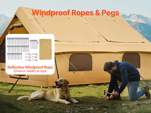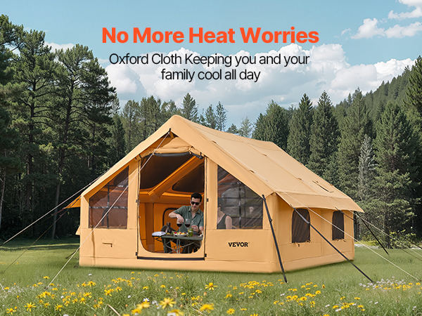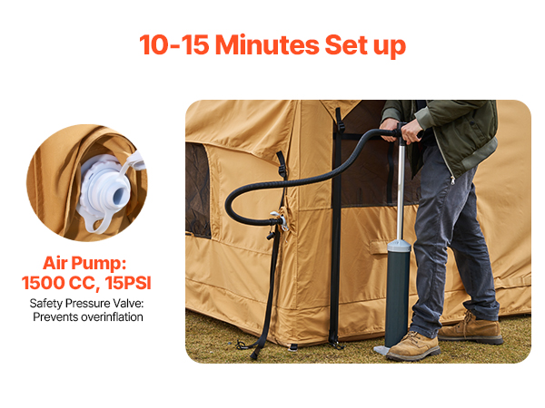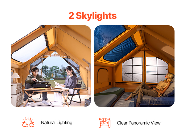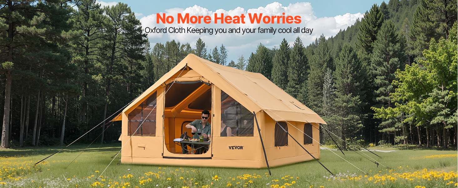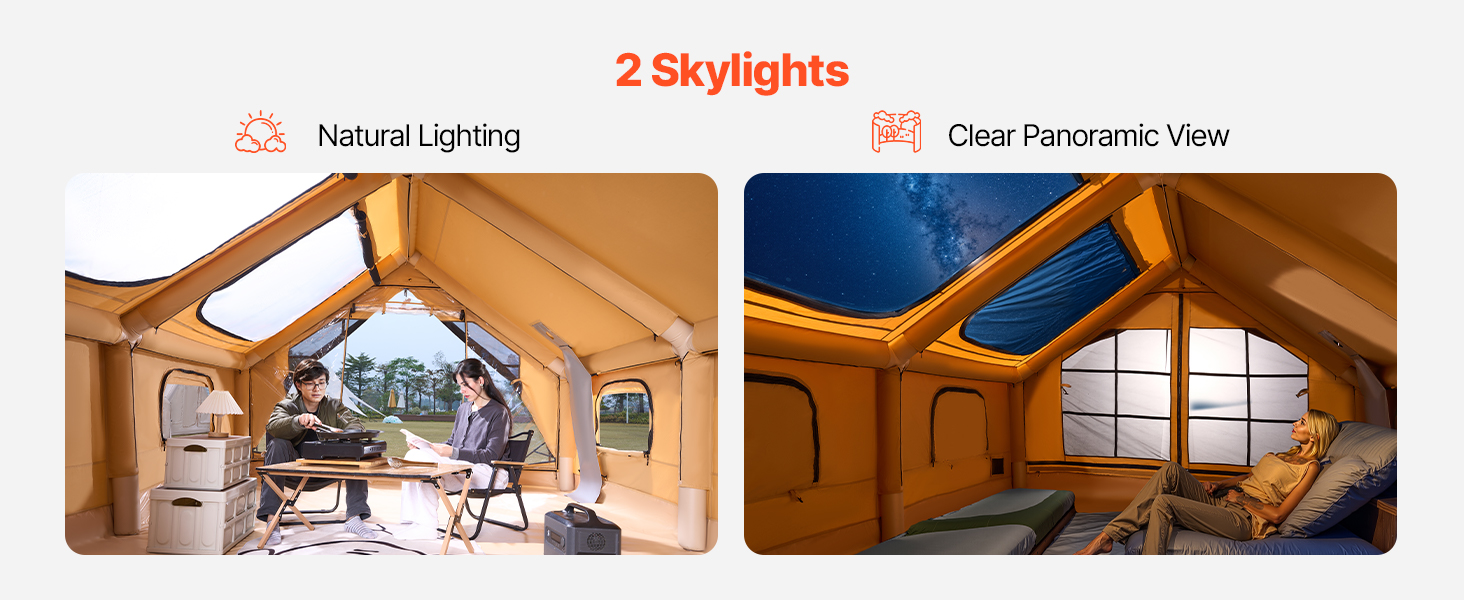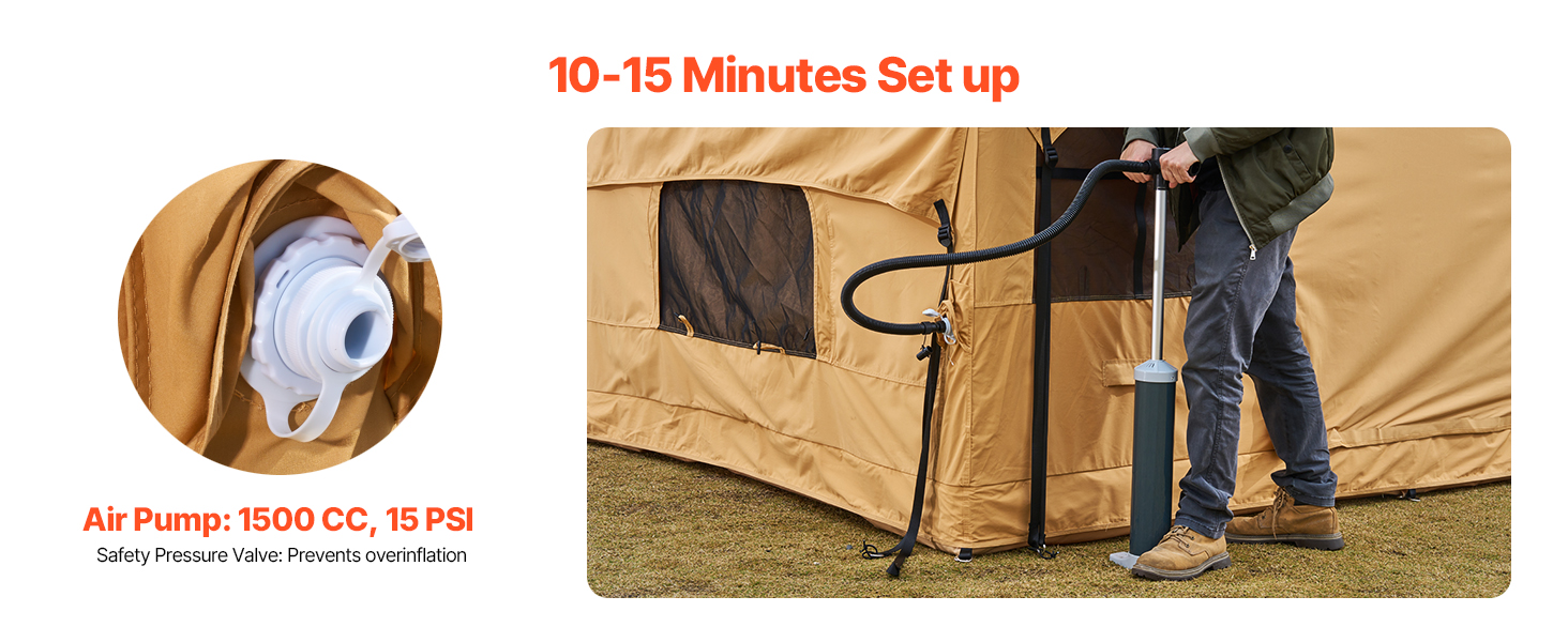VEVOR Inflatable Tents for Camping, 5-8 Person Easy Setup Blow up Tent with Hand Pump, Luxury Glamping Tent with 2 Skylights, Canopy, Stove Jack 2 Doors & Mesh Windows (Storage Bag Included)