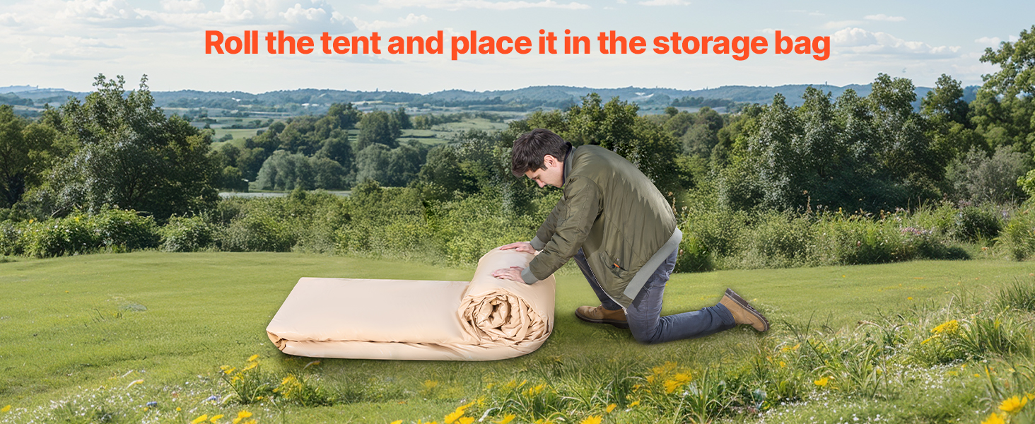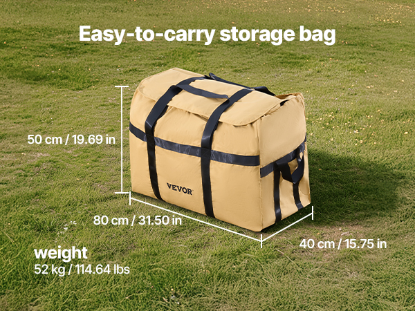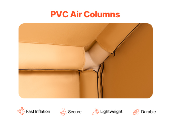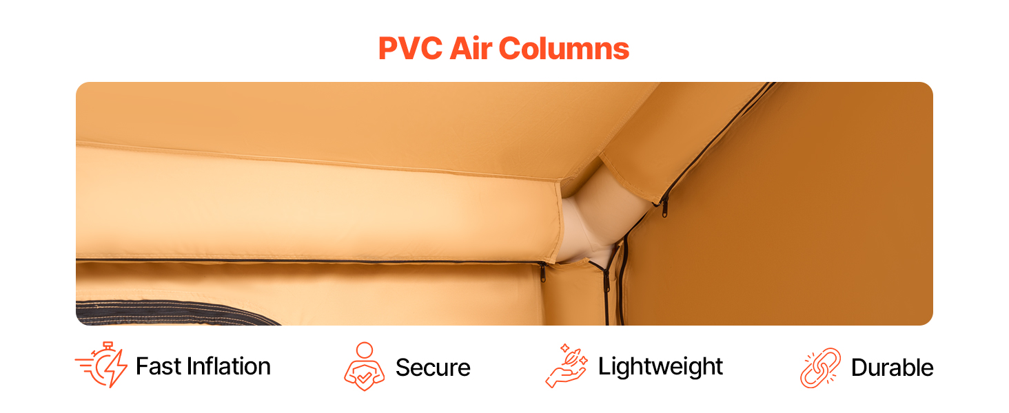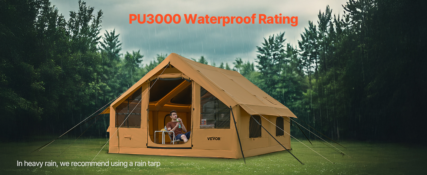 Piepūšamā kempinga telts nodrošina 129 kvadrātpēdu lielu platību, kas ir ideāli piemērota ģimenei vai draugu grupai. Neatkarīgi no tā, vai uzstādāt krēslus un piepūšamos matračus vai baudāt laiku kopā, šī telts rada privātu, dabas piepildītu atpūtas vietu jūsu kempinga piedzīvojumiem.