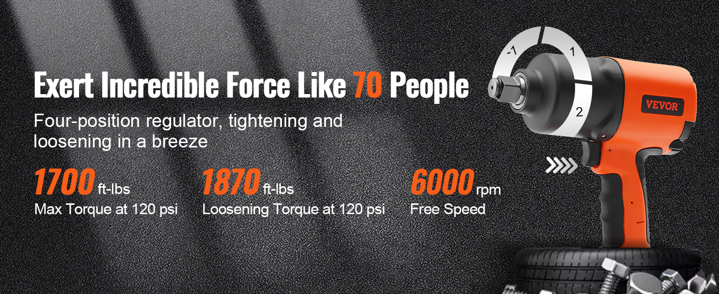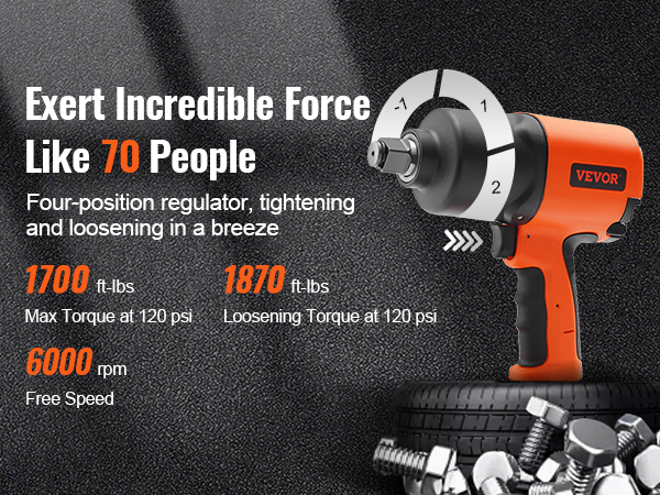Ar jaudu līdz 1870 pēdu mārciņām un vieglo dizainu, VEVOR pneimatiskais triecienskrūvgriezis ir jaudīgs un par saprātīgu cenu, kas var tikt galā ar automašīnu un vieglo kravas automašīnu riteņu skrūvēm un viegliem piekares darbiem, vienlaikus esot ērts un manevrējams. VEVOR ir jūsu labākā izvēle, lai paveiktu darbu.