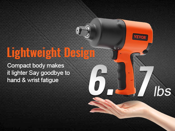 VEVOR 1/2 collu pneimatiskā uzgriežņu atslēga, kas sver tikai 6,7 mārciņas, piedāvā savā klasē augstāko jaudas un svara attiecību.