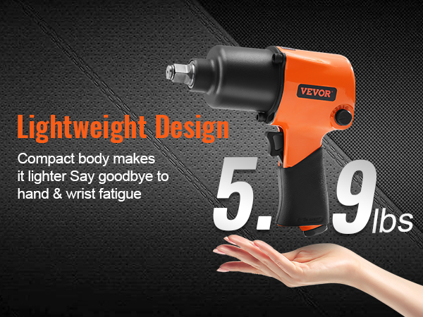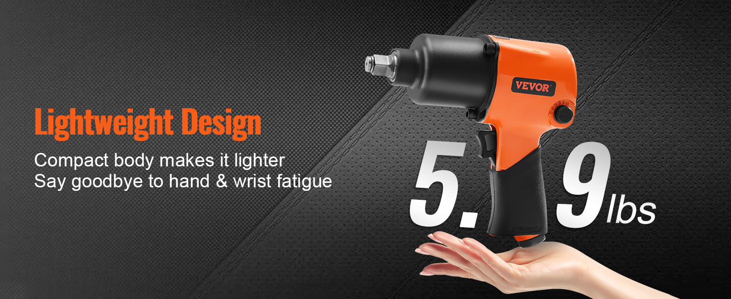 VEVOR 1/2 collu pneimatiskā uzgriežņu atslēga, kas sver tikai 5,9 mārciņas, piedāvā savā klasē augstāko jaudas un svara attiecību.