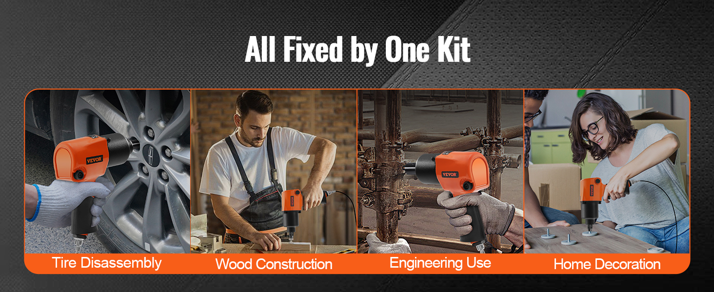 Ar jaudu līdz pat 880 pēdu mārciņām un vieglo dizainu, VEVOR pneimatiskais triecienskrūvgriezis ir jaudīgs un par saprātīgu cenu, kas var tikt galā ar automašīnu un vieglo kravas automašīnu riteņu uzgriežņiem un viegliem piekares darbiem, vienlaikus esot ērts un manevrējams. VEVOR ir jūsu labākā izvēle, lai paveiktu darbu.