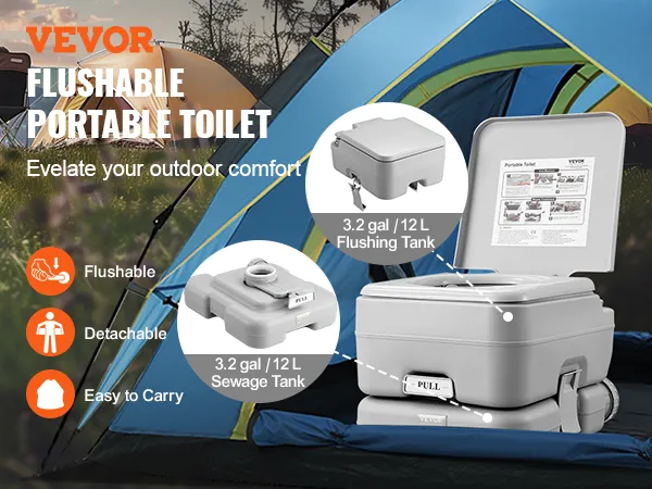 This portable toilet features a detachable 2.6 gal flush tank and a 3.2 gal waste tank, boasting 440 lbs weight capacity. It's perfect for pregnant women and the elderly, providing comfortable seating. Compact in design, it's ideal for use in RVs, boats, trucks, vans, camping, and road trips.