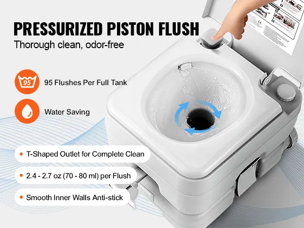 With just 3.4-3.6 oz (100-105 ml) of water per flush, the pressurized flush pump efficiently cleans waste. The tank's capacity allows for 95 flushes, minimizing the need for frequent water refills and conserving water resources.