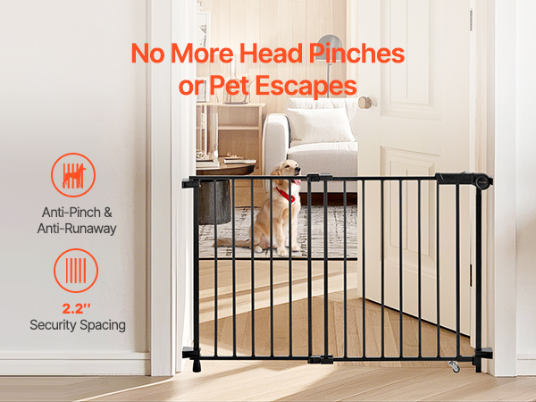 Ar 2,2 collu šauru stieņu atstarpi šie bērnu vārtiņi kāpnēm efektīvi neļauj mazuļiem paslīdēt galvām caur spraugām, samazinot traumu risku. Tie arī neļauj mājdzīvniekiem iespraukties cauri, nodrošinot gan bērnu, gan dzīvnieku drošību jūsu mājās.