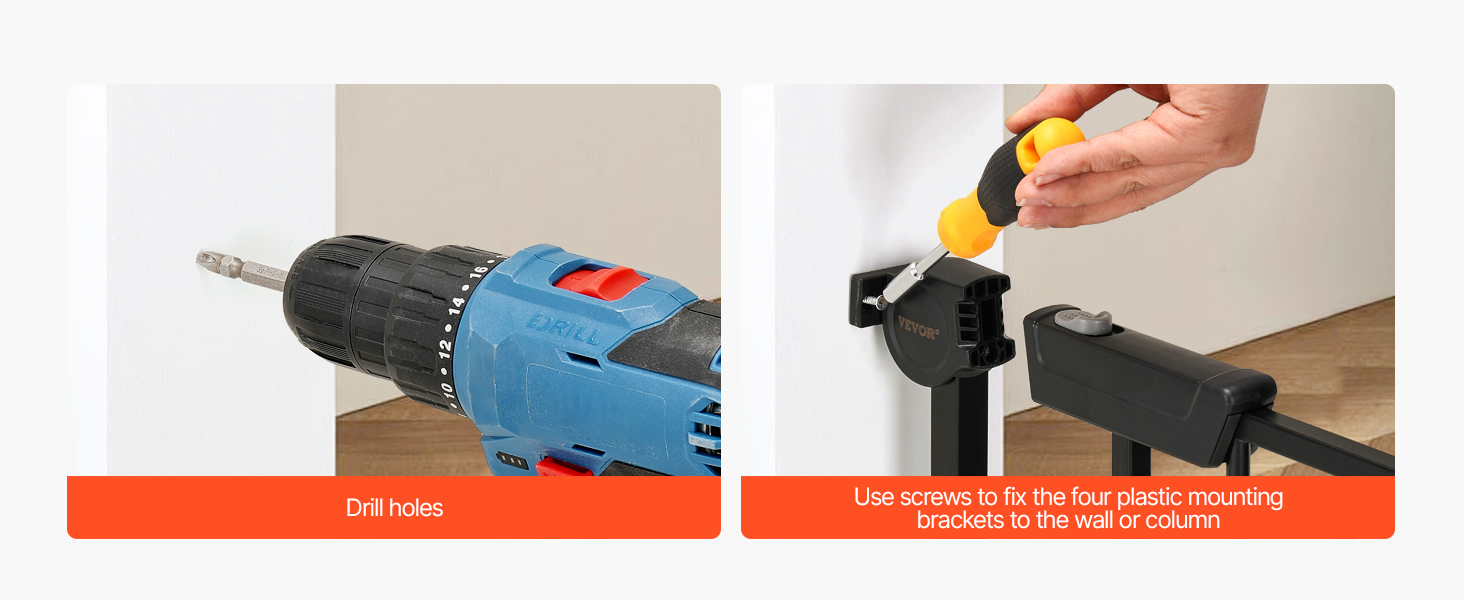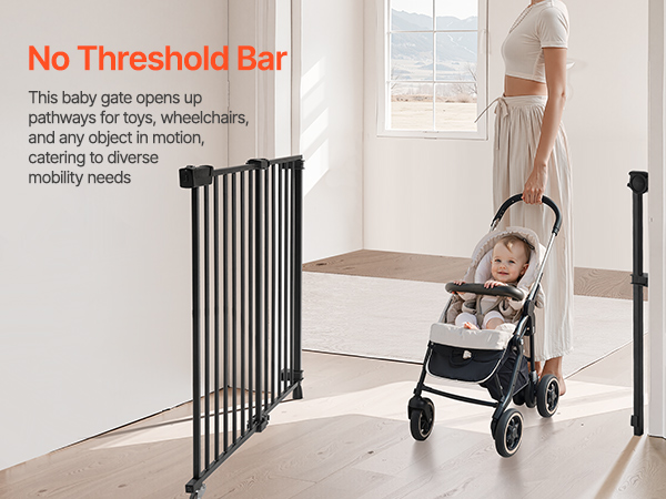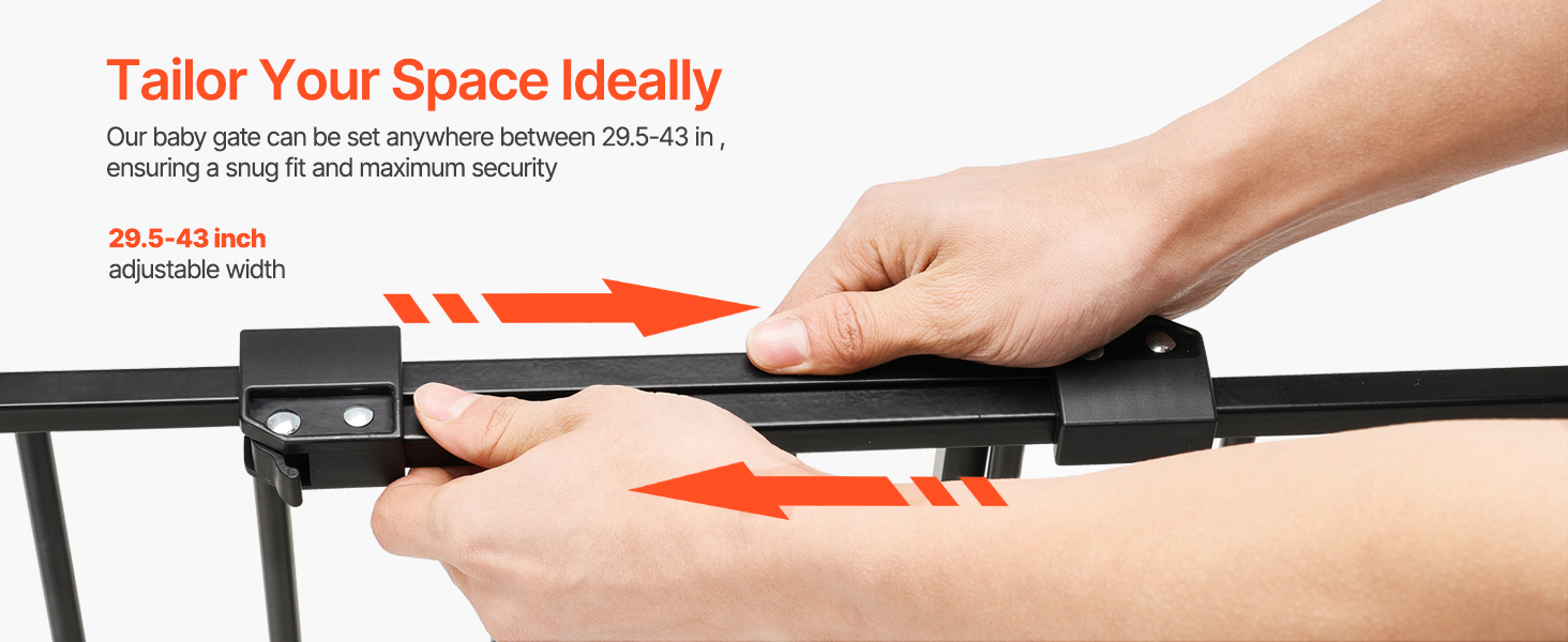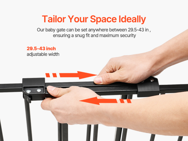 VEVOR Baby Gate, 29.5-43 Inches Adjustable Width, 28 Inches High Dog Gate, No Threshold Bar, Easy Step Walk Thru, for Child Pet Security, with Screws, One-Hand Open, for Stairs and Doorways, Black