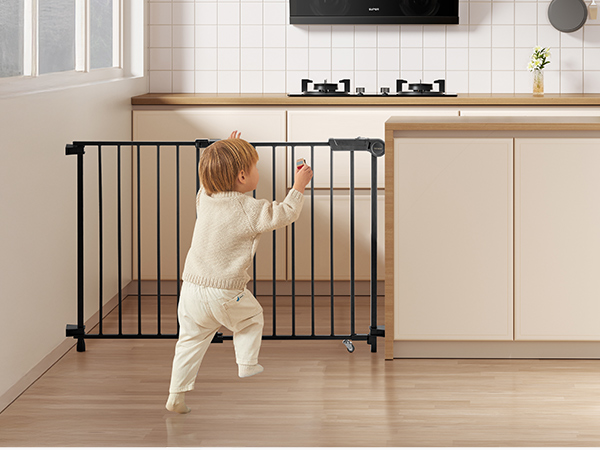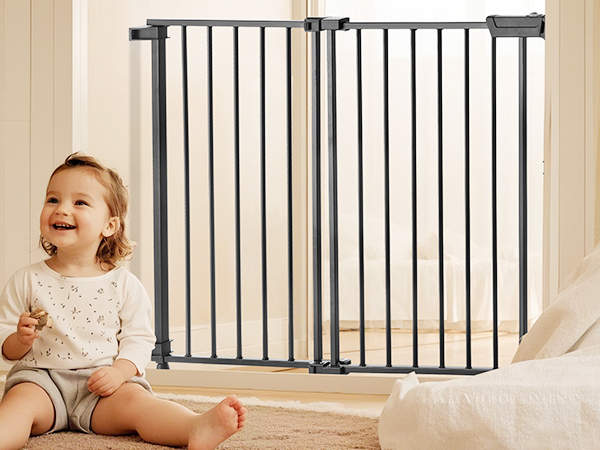 Šaurais 2,2 collu stieņu atstatums neļauj mazuļiem iesprūst, un divkāršā bloķēšanas sistēma nodrošina, ka bērnu vārtiņi turas droši aizvērti. Ar regulējamu platumu no 29,5 līdz 43 collām tie ir piemēroti dažādiem iestatījumiem, radot drošu vidi jūsu mazulim. Tie garantē drošību jūsu sirdsmieram!