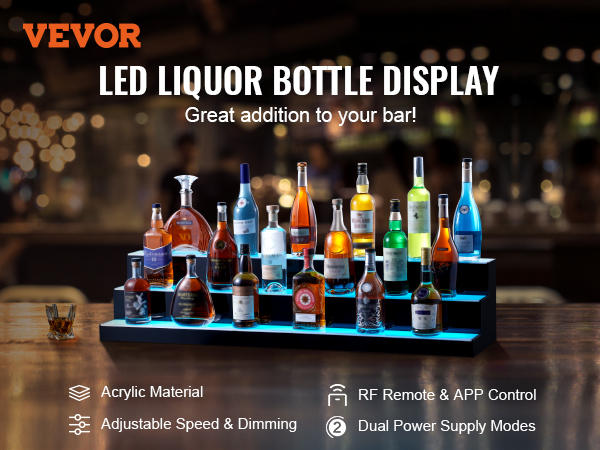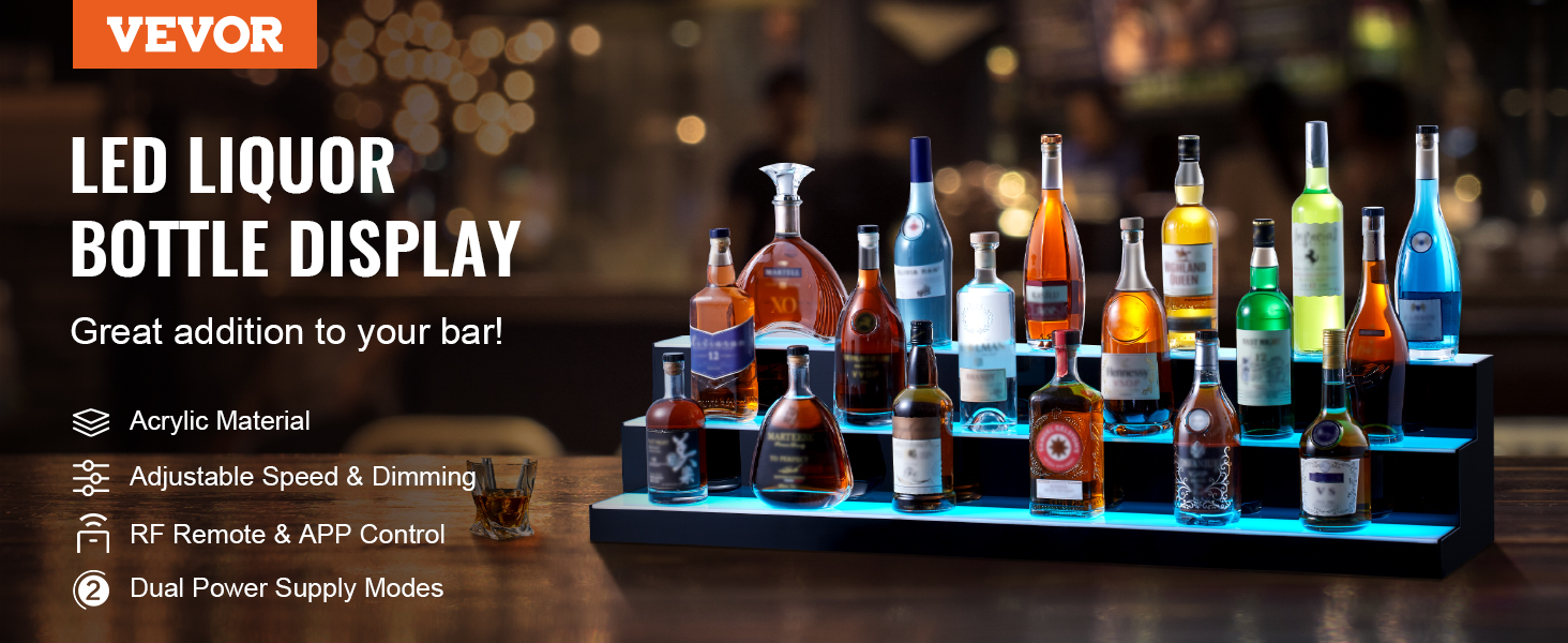VEVOR LED Lighted Liquor Bottle Display Bar Shelf RF & App Control 121.9 cm 3-Step