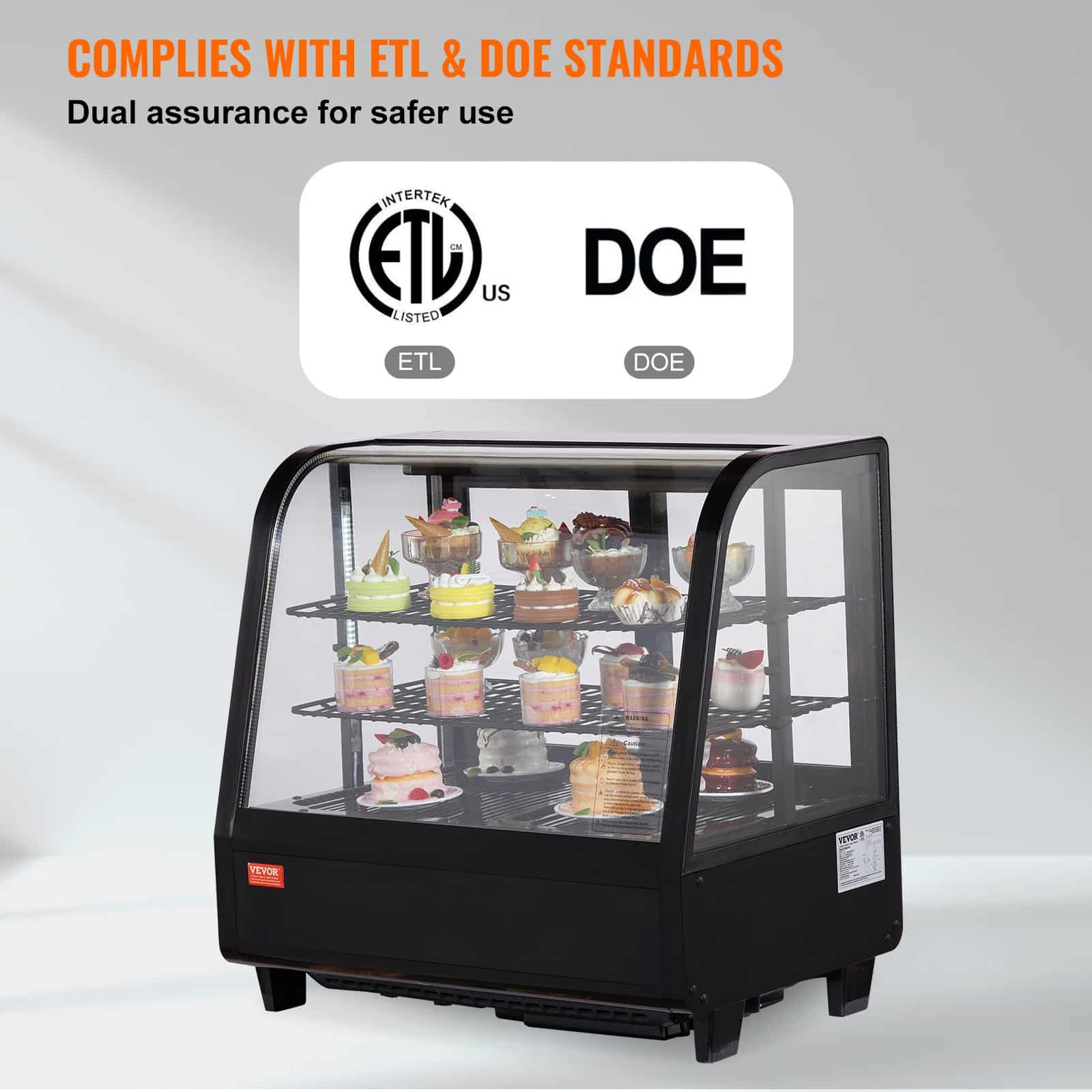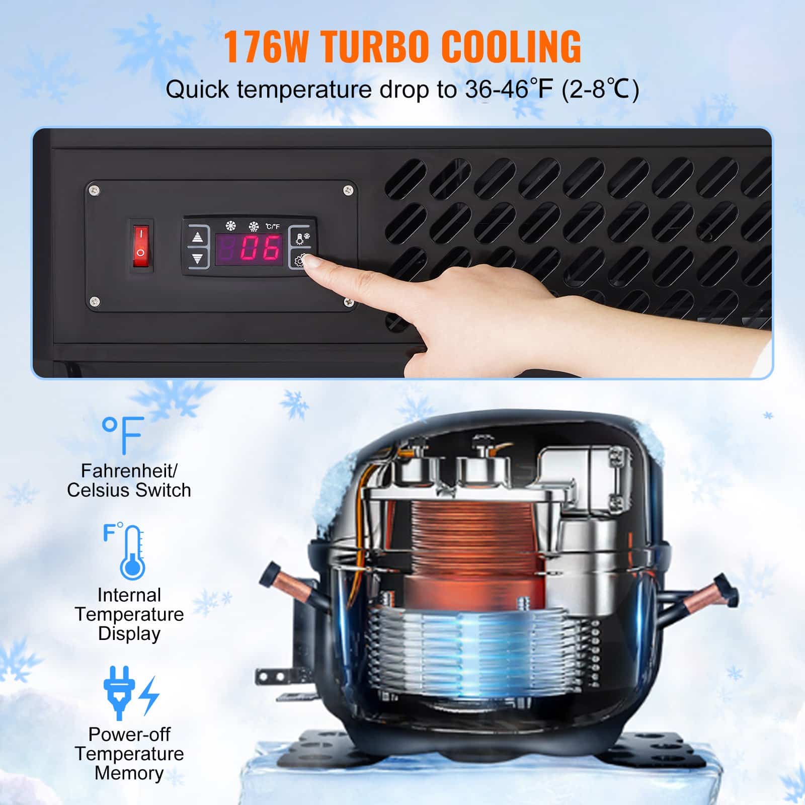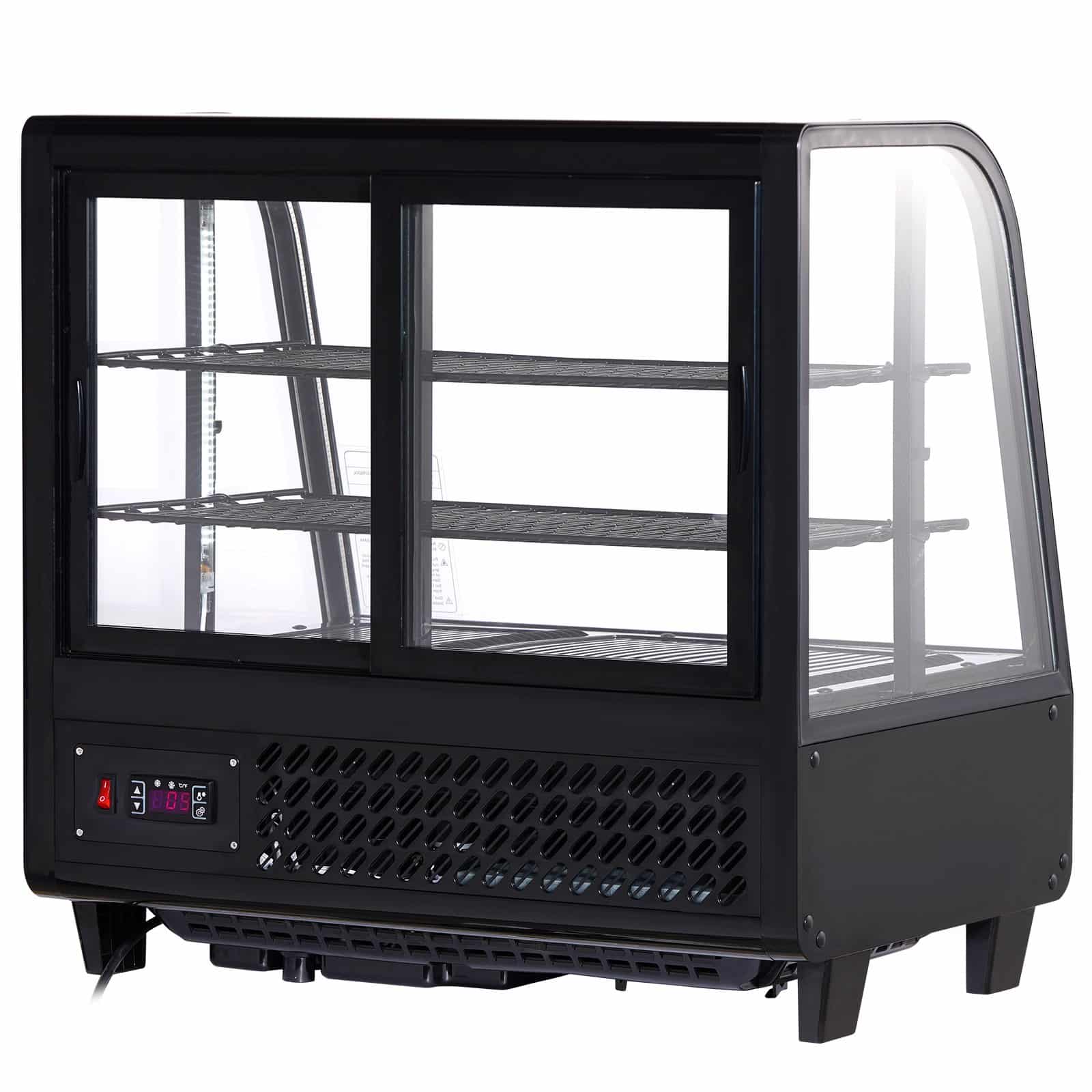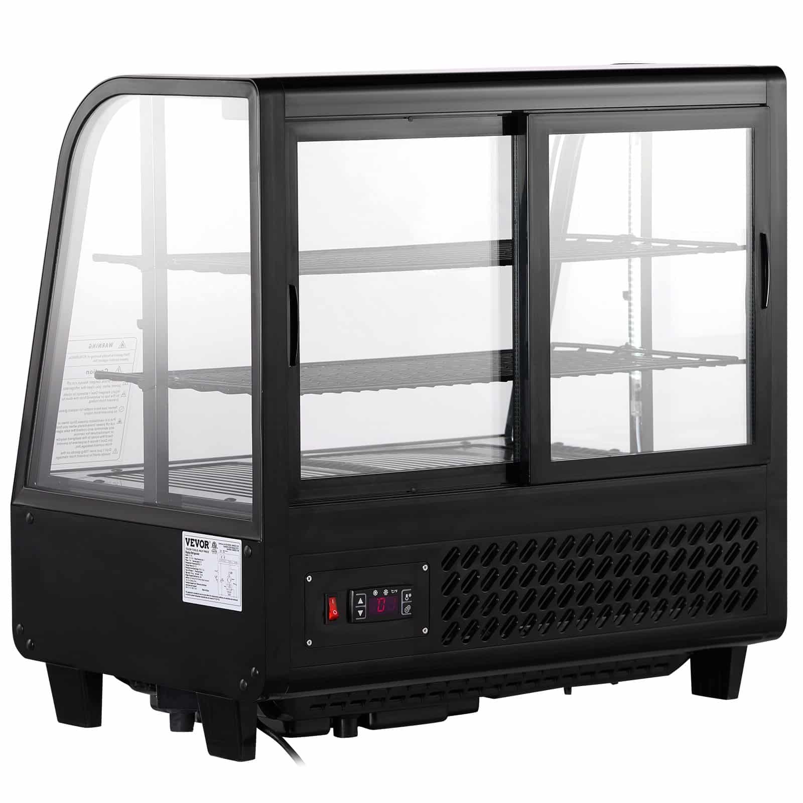 VEVOR ledusskapja futrālis, 3,5 Cu.Ft/100L, divlīmeņu, galda kūku displeja ledusskapis ar LED apgaismojumu, ātrās dzesēšanas sistēma, bezsala ventilācija, bīdāmās piekļuves aizmugurējās durvis