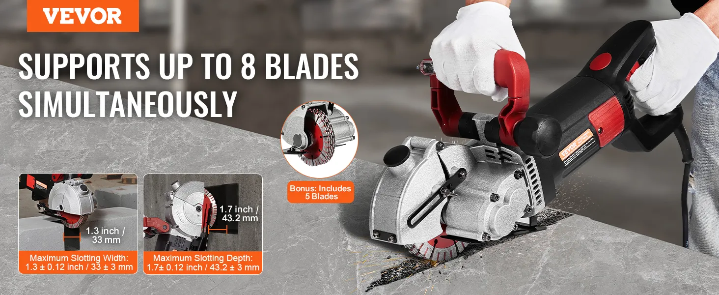 To meet different needs, you can adjust the cutting depth and width by changing the blades' quantity. It comes with saw blades.