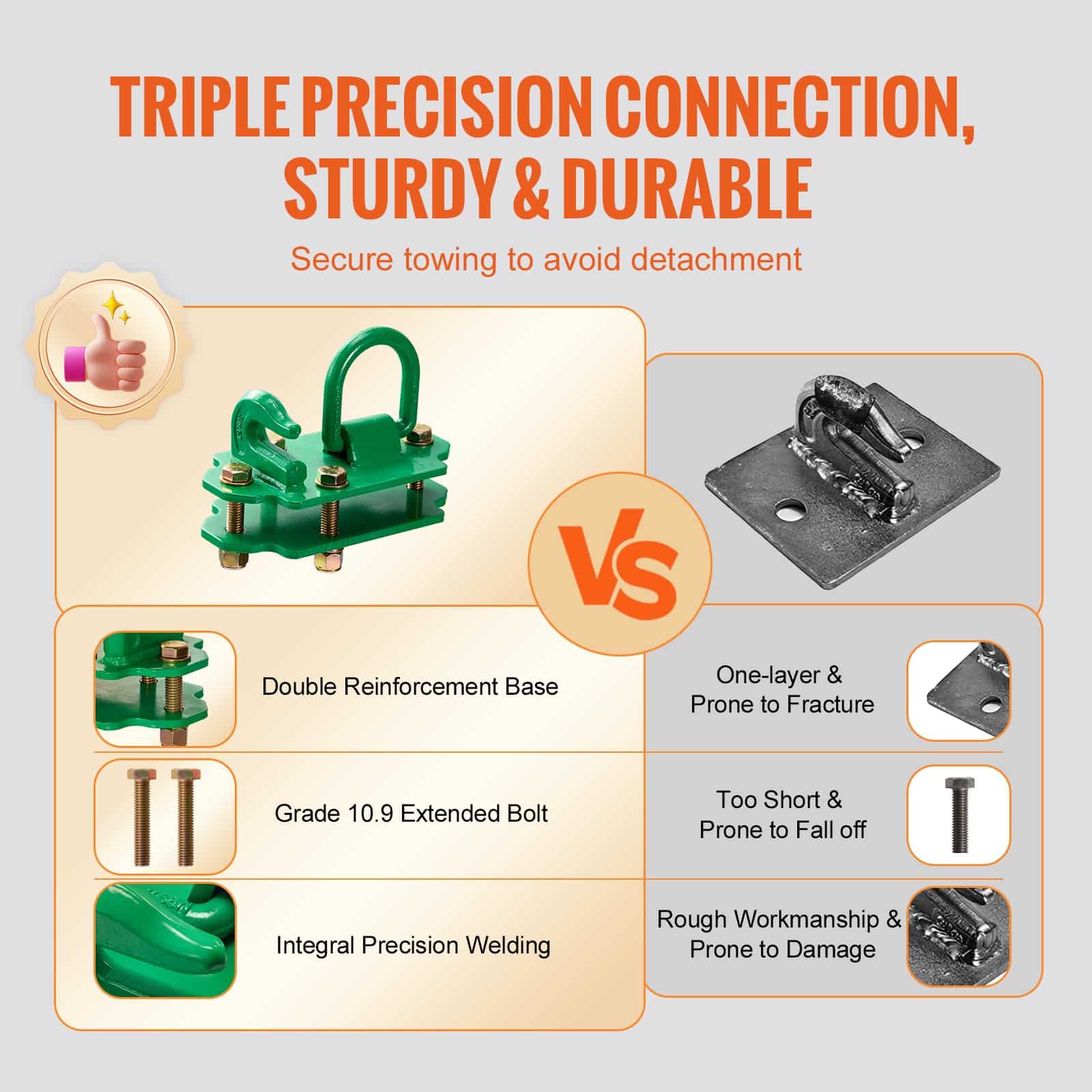 • Flexible & Efficient: This bolt on grab hook supports multiple applications, allowing users to choose between standalone towing or using it in combination with chains and shackles. By increasing towing length or stabilizing loads, it effectively addresses complex terrains, thereby enhancing overall work efficiency. This versatility ensures that it can adapt to various situations and requirements, making it an essential tool for a wide range of tasks.