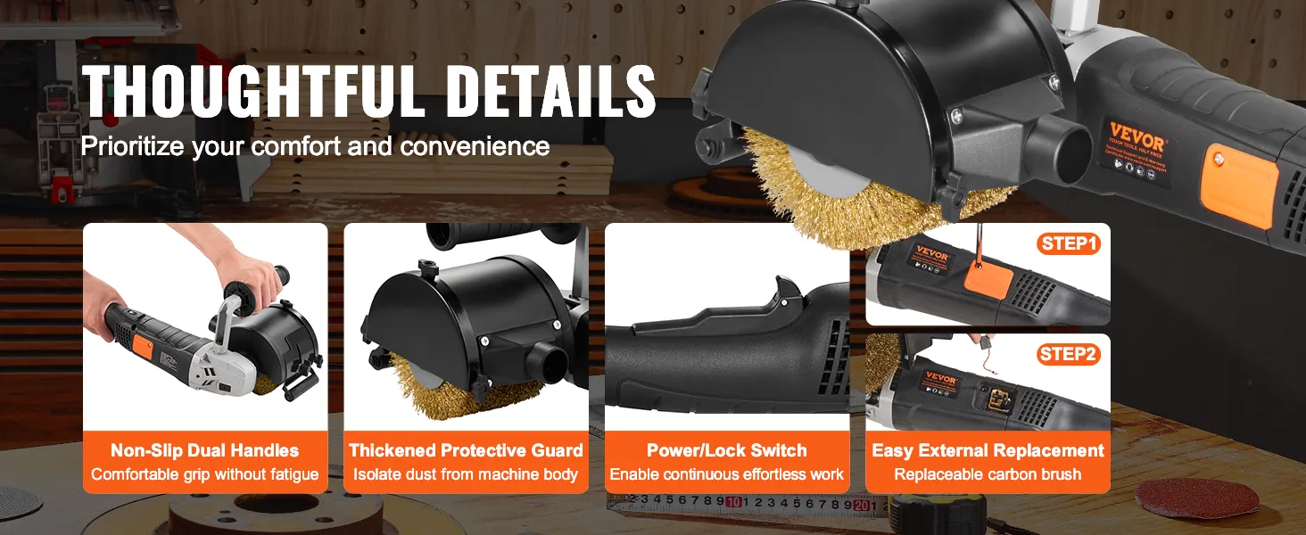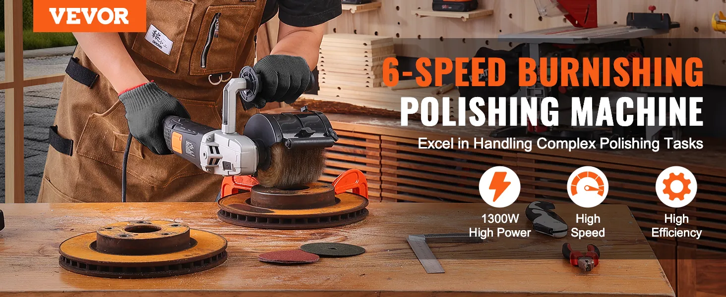 • Jaudīga veiktspēja: VEVOR pulēšanas mašīna ar 1300 W jaudīgu motoru nodrošina izcilu jaudu sarežģītiem pulēšanas darbiem. Augstas temperatūras izturīgs vara stieples motors un pārslodzes aizsardzība nodrošina uzticamu izturību.