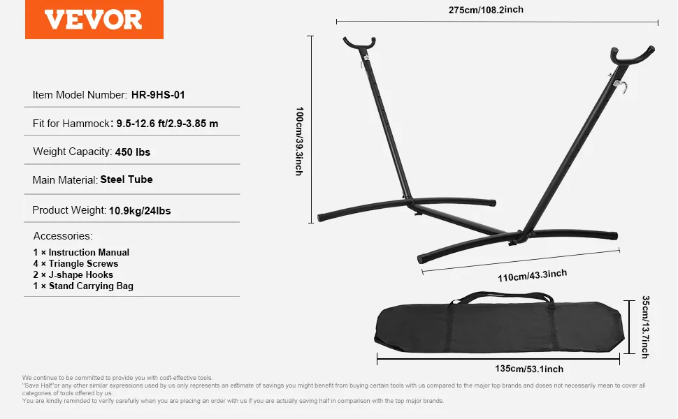 • Liela izmēra statīvs: Kopējie izmēri: 118,1 x 47,2 x 39,3 collas, šis šūpuļtīkla statīvs ir piemērots šūpuļtīkliem ar izmēru no 9,5 līdz 12,6 pēdām, ideāli piemērots vienai vai divām personām. Izbaudiet relaksējošas šūpošanās kopā ar ģimeni, draugiem un mīļajiem savā šūpuļtīklā!