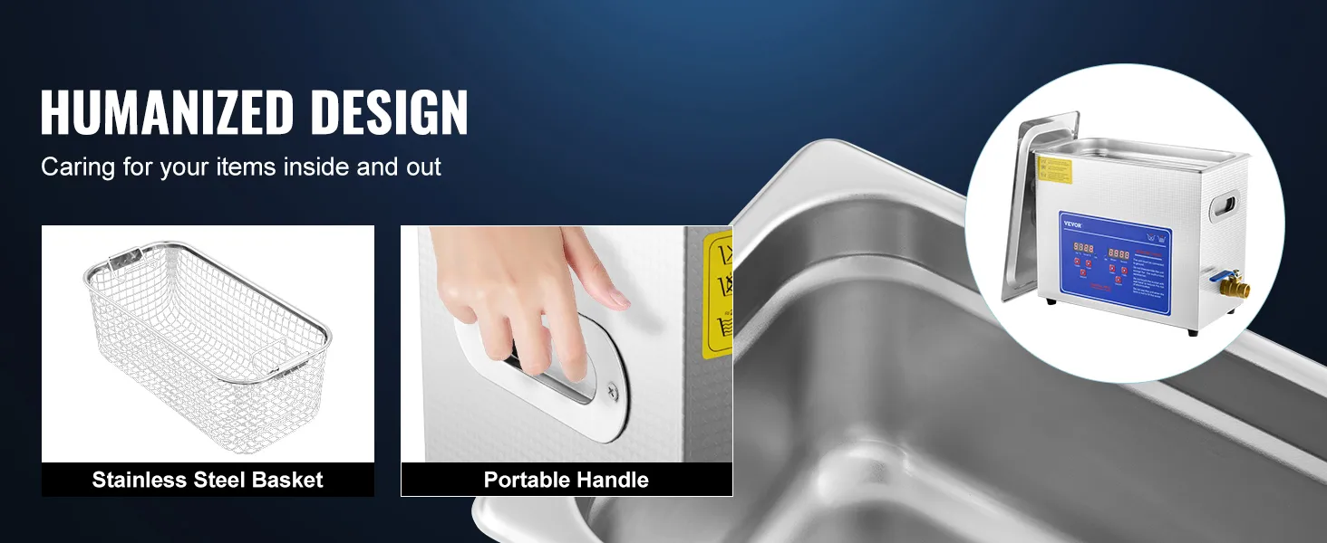 • Quality You Can Trust: Designed with a premium SUS304 stainless steel tank and basket, the 6 L sonic cleaner securely holds and cleans various valuable items like jewelry, eyeglasses, and watches. Attention to detail ensures that each item receives a meticulous cleaning.