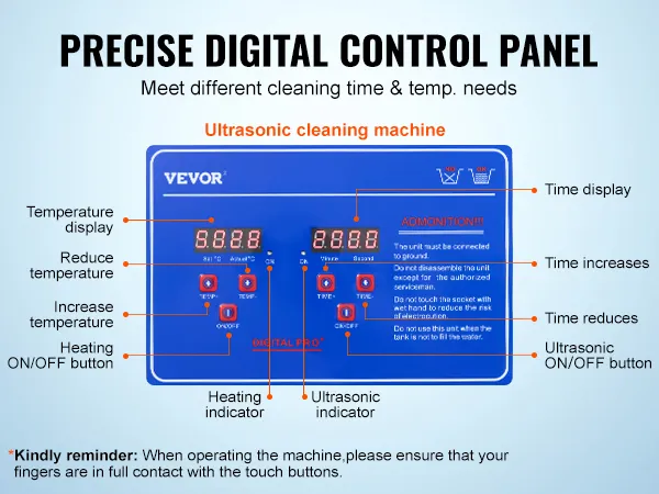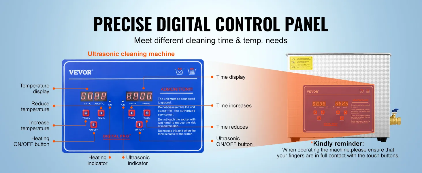 • Digitālais vadības panelis: digitālais vadības panelis nodrošina ērtu lietošanu, ļaujot precīzi kontrolēt tīrīšanas laiku un temperatūru. Vairāki režīmi apmierina dažādu priekšmetu specifiskās vajadzības, padarot tīrīšanas procesu bez problēmām un uzlabojot tīrīšanas efektivitāti.