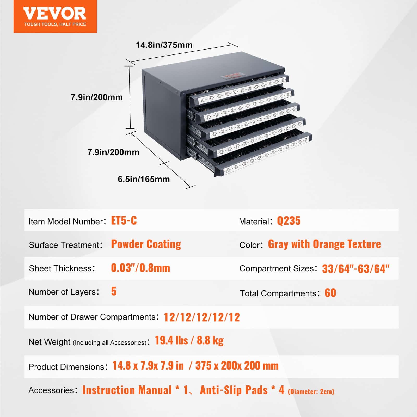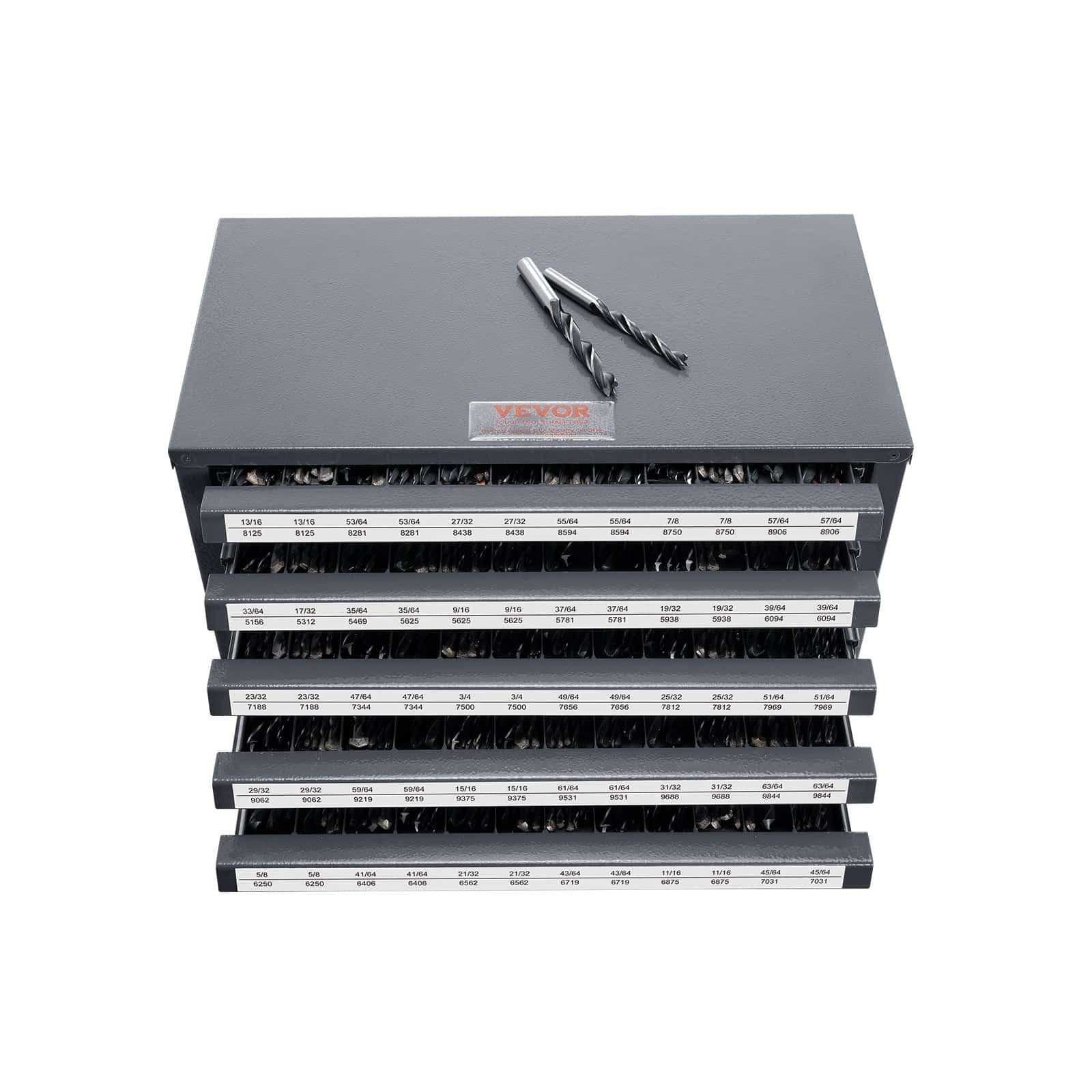 VEVOR Drill Bit Dispenser Cabinet, Five-Drawer Drill Bit Organizer Cabinet for 13.1 mm to 25.4 mm Steel Drill Dispenser Organizer Cabinet with Labels, Stackable Drill Dispenser for Drill Bit Storage